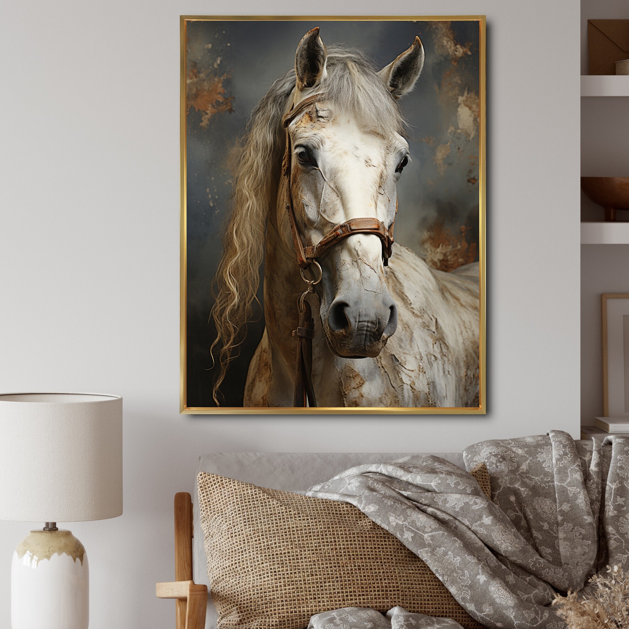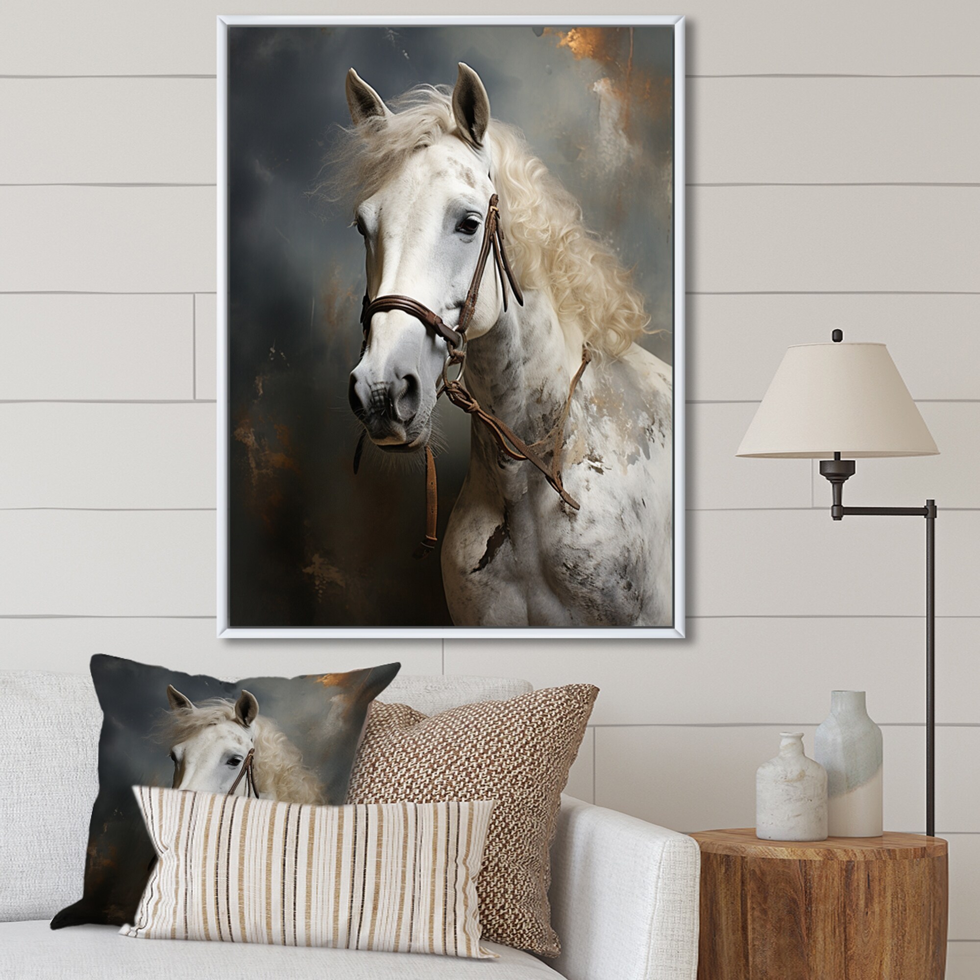 Designart "White Horse Equestrian Duality III" Animals Horse Framed Canvas Art Print