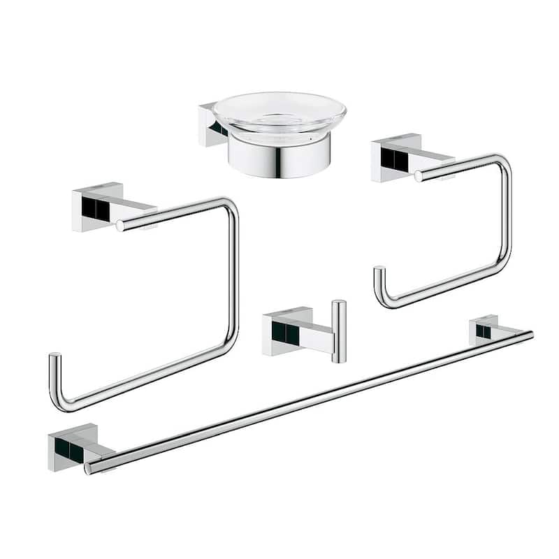 Grohe Essentials Cube Glass/Metal 25.59-in. 5-in-1 Master Bathroom Accessories Set - StarLight Chrome