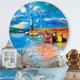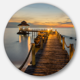 Designart 'Brown Wooden Pier in Evening' Seashore Photo Round Wall Art