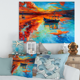 Designart "Boat During Evening Glow At the Lake IV" Nautical & Coastal Canvas Wall Art Print