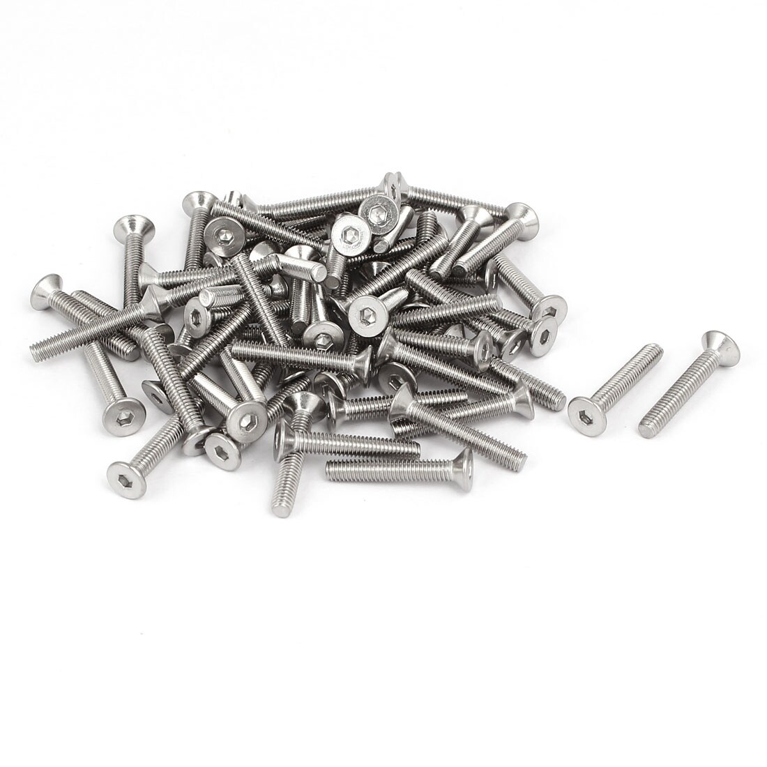 M4x25mm 304 Stainless Steel Flat Head Hex Socket Screws Fasteners DIN7991 60pcs - Silver Tone