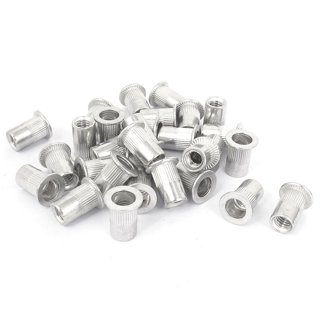 30pcs M6x1mm Flat Head Blind Rivet Nut Insert Nutserts Fastener 15mm Long - Silver Tone