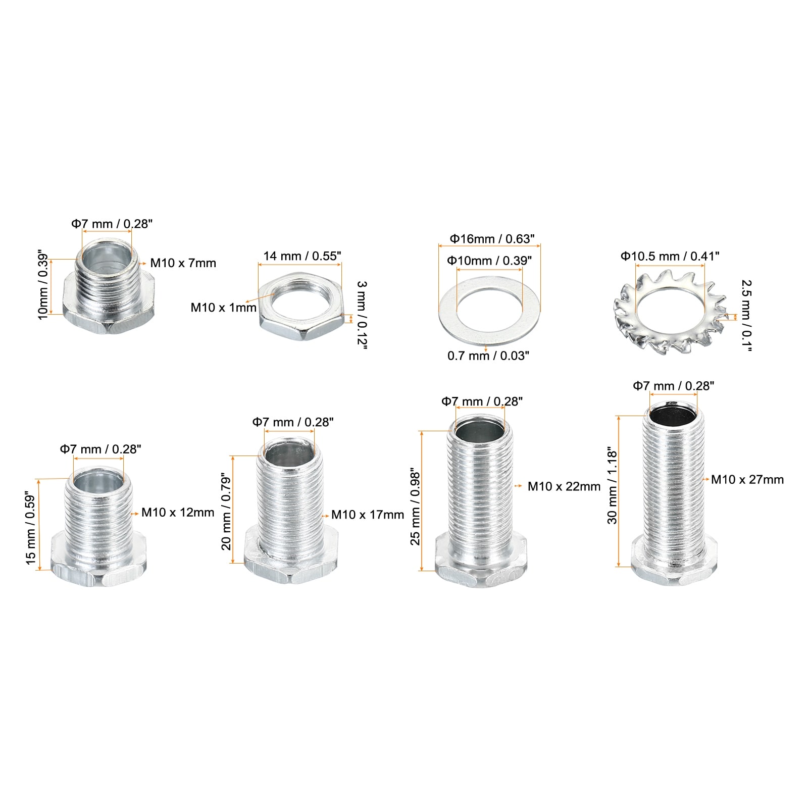 100pcs M10 Thread Hex Hollow Screw Bolts Hollow Bolt Lamp Fasteners
