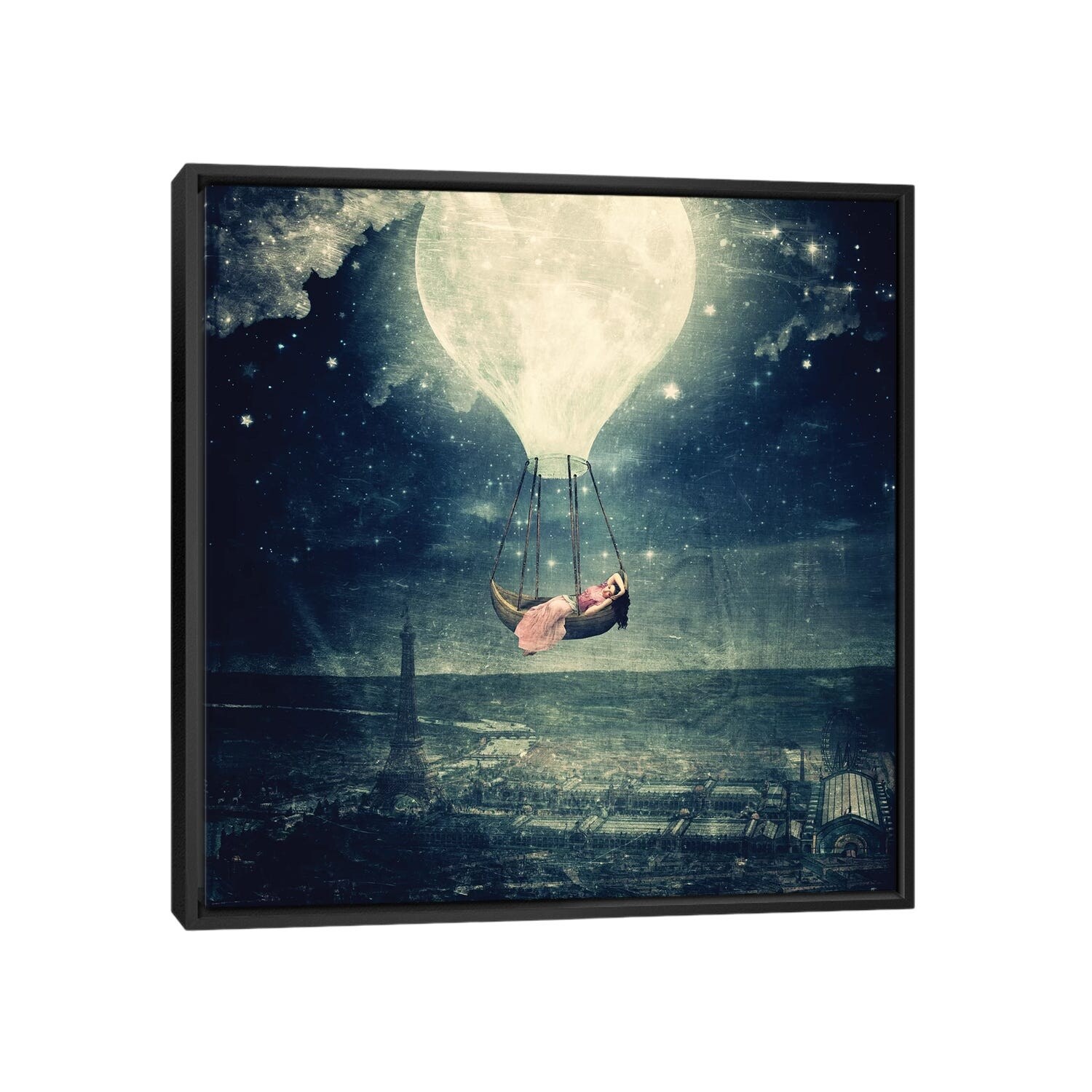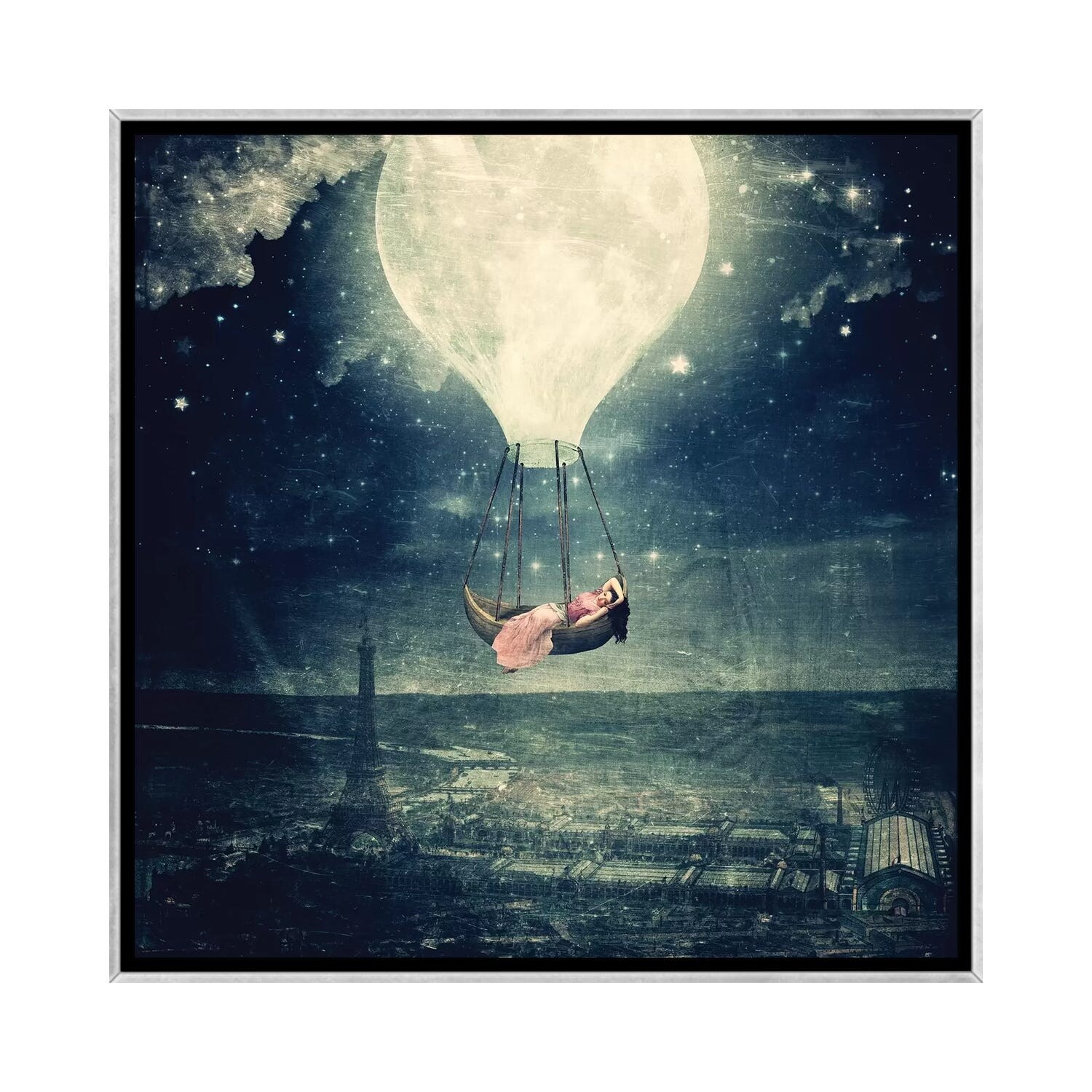 iCanvas "Moon Promenade Over Paris" by Paula Belle Flores Framed Canvas Print