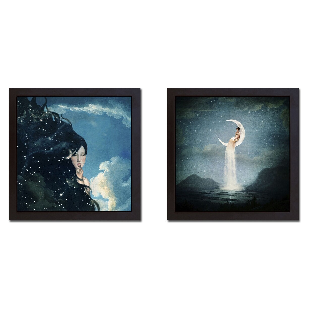 Lady Night & Moon River Lady by Paula Belle Flores 2-pc Black Floater Framed Canvas Art Set (20 in x 20 in Each Piece in Set)