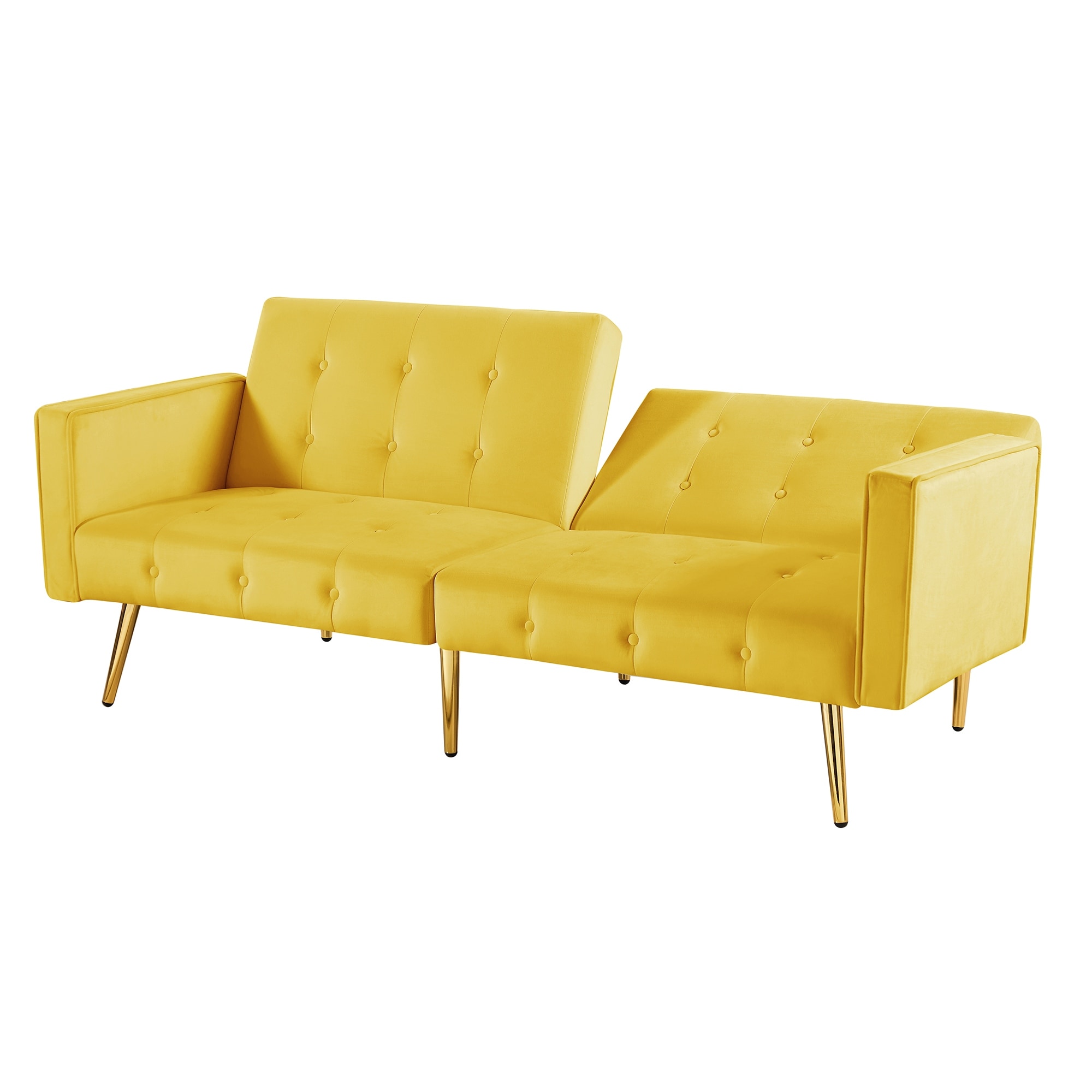 Velvet Button Tufted Sofa Bed with Gold Metal Legs, Convertible Folding Sleeper