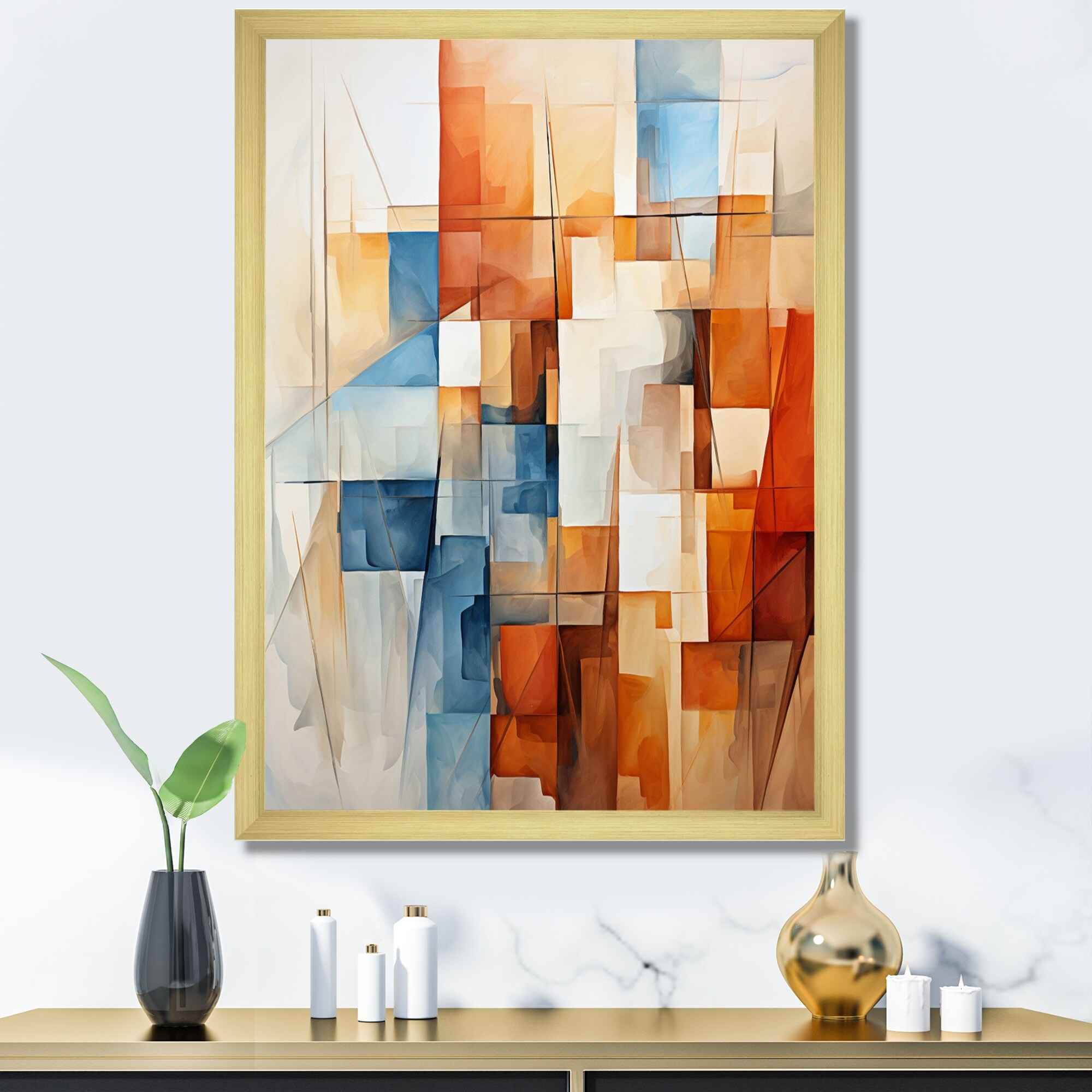 Designart "Cubism Fragmented Perspectives I" Cubism Framed Canvas Wall Art