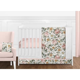Blush Pink and White Floral Leaf Girl Nursery Crib Bedding Set Boho Chic Bohemian Watercolor Botanical Flower Woodland Tropical