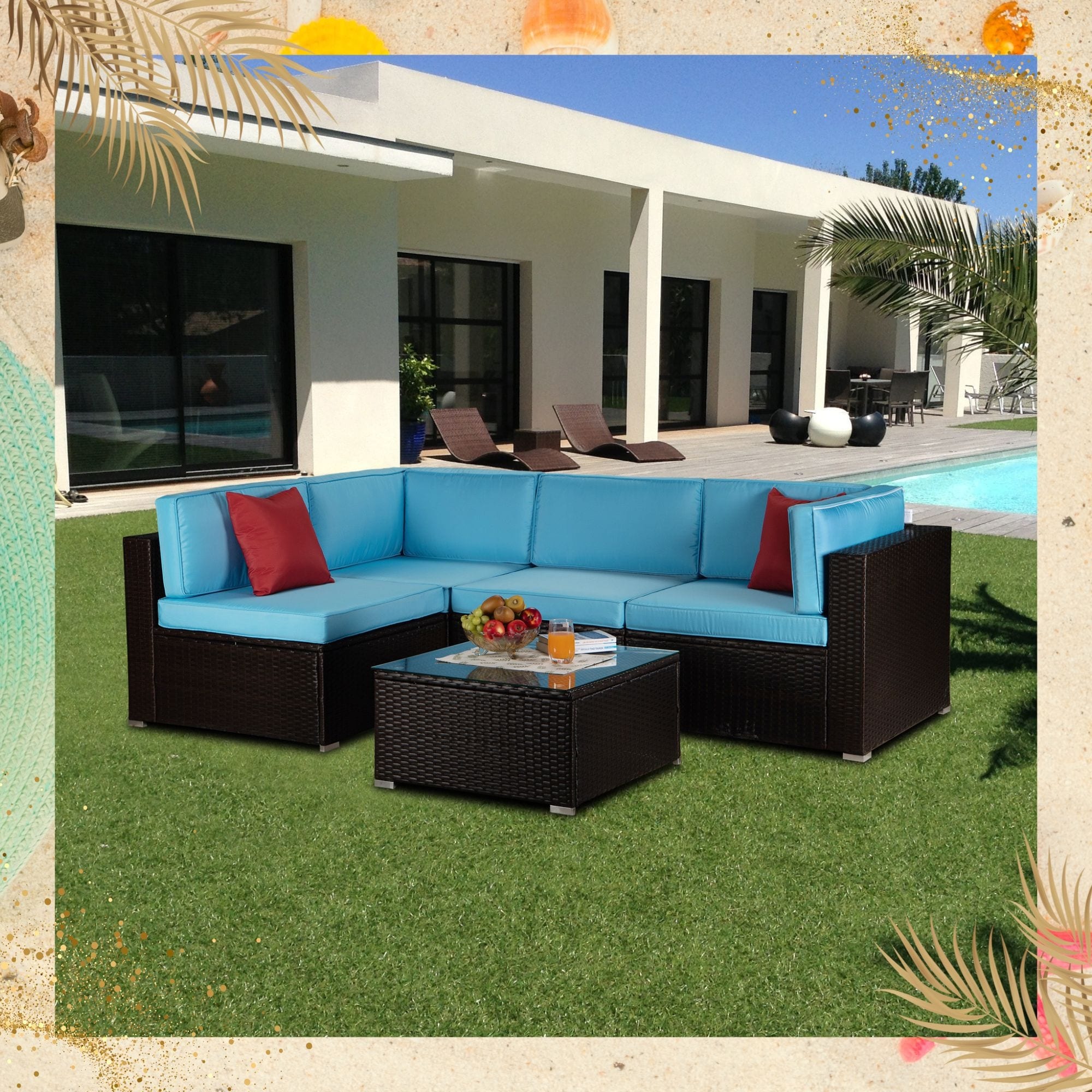 6-Piece Patio Furniture Set Outdoor Sectional Sofa with Glass Table