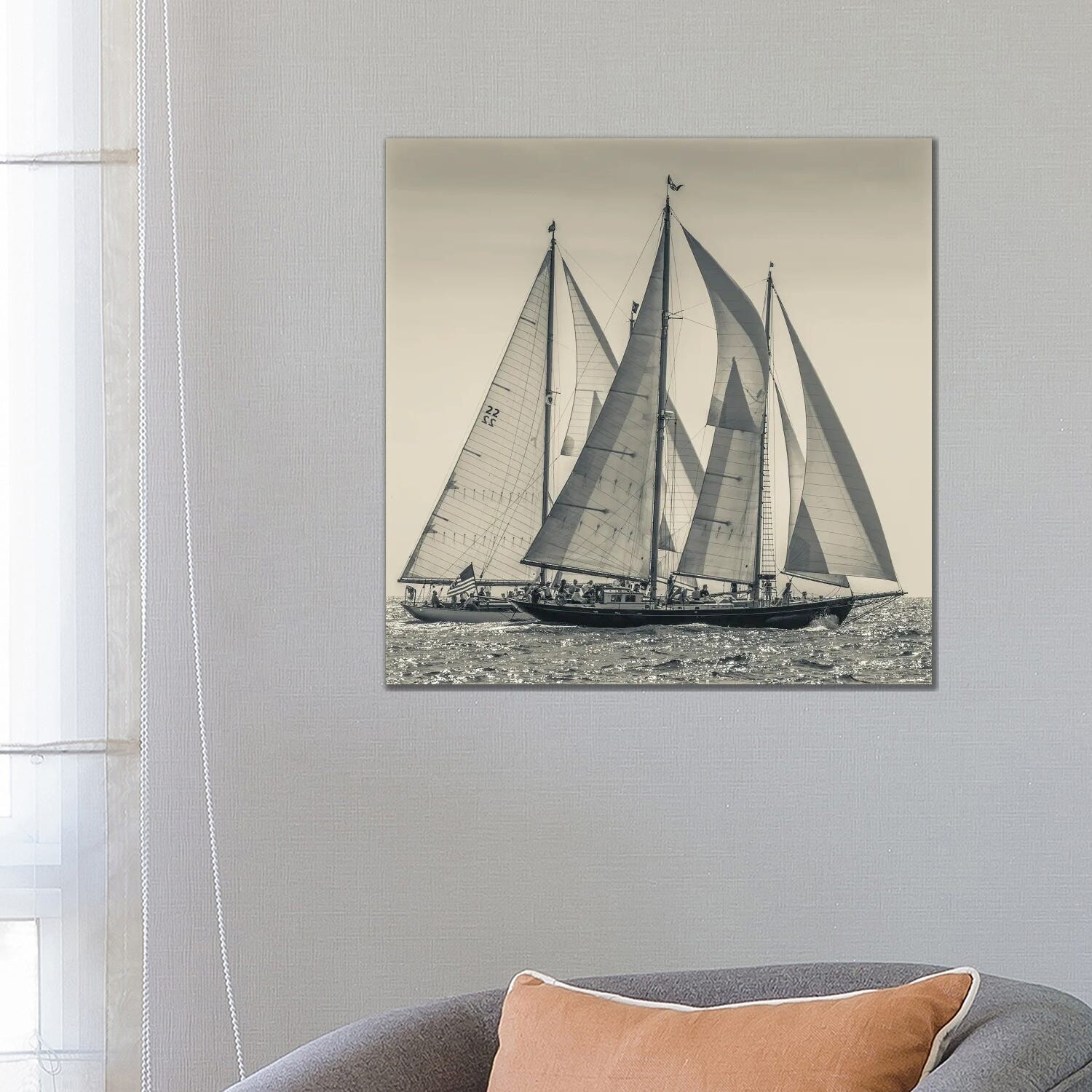 iCanvas "USA, Massachusetts, Cape Ann, Gloucester, schooner sails " by Walter Bibikow