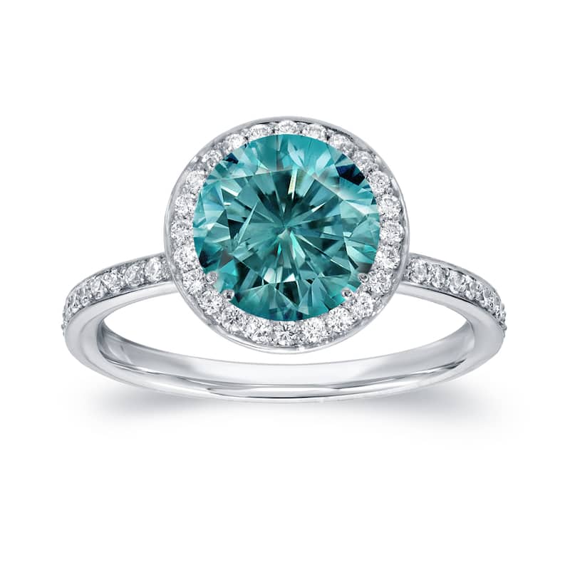 14k Gold Round 1 3/4ct TDW Blue Diamond Halo Engagement Ring by Auriya (H-I, SI2-SI3)