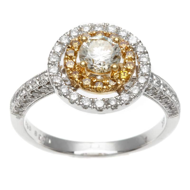 Kabella Luxe 18k Two-tone Gold Halo 1 1/5ct TDW White and Yellow Diamond Ring (H-I, SI1-SI2)
