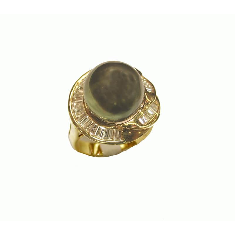 Kabella Luxe Collection 18k Yellow Gold Tahitian Pearl and 1 1/5ct TDW Diamond Ring (G-H, SI1-SI2) (12-13 mm)