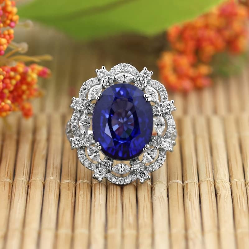 Auriya 8 1/3ct Oval-cut Blue Sapphire and 1 1/3ctw Pave Diamond Ring 18K Gold
