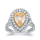 Auriya 18k Two-tone Gold 3ct TDW Certified Natural Fancy Yellow Diamond Pear Double Halo Ring (VS1-VS2)