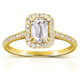 Annello by Kobelli 14k Yellow Gold 1 1/3ct TDW Emerald-cut Diamond Halo Engagement Ring