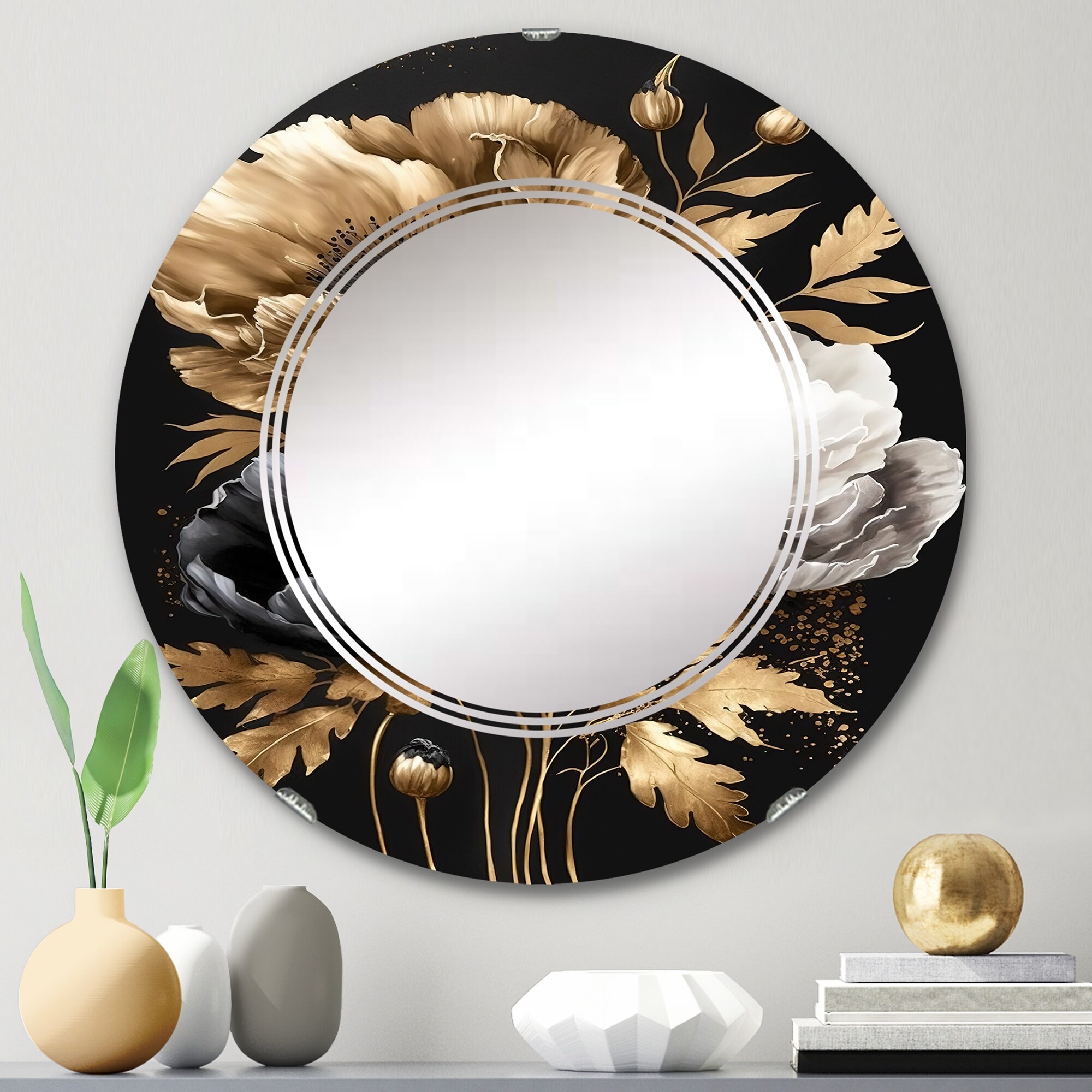Designart 'Golden Gothic Floral Bouquet IV' Printed Floral Wall Mirror