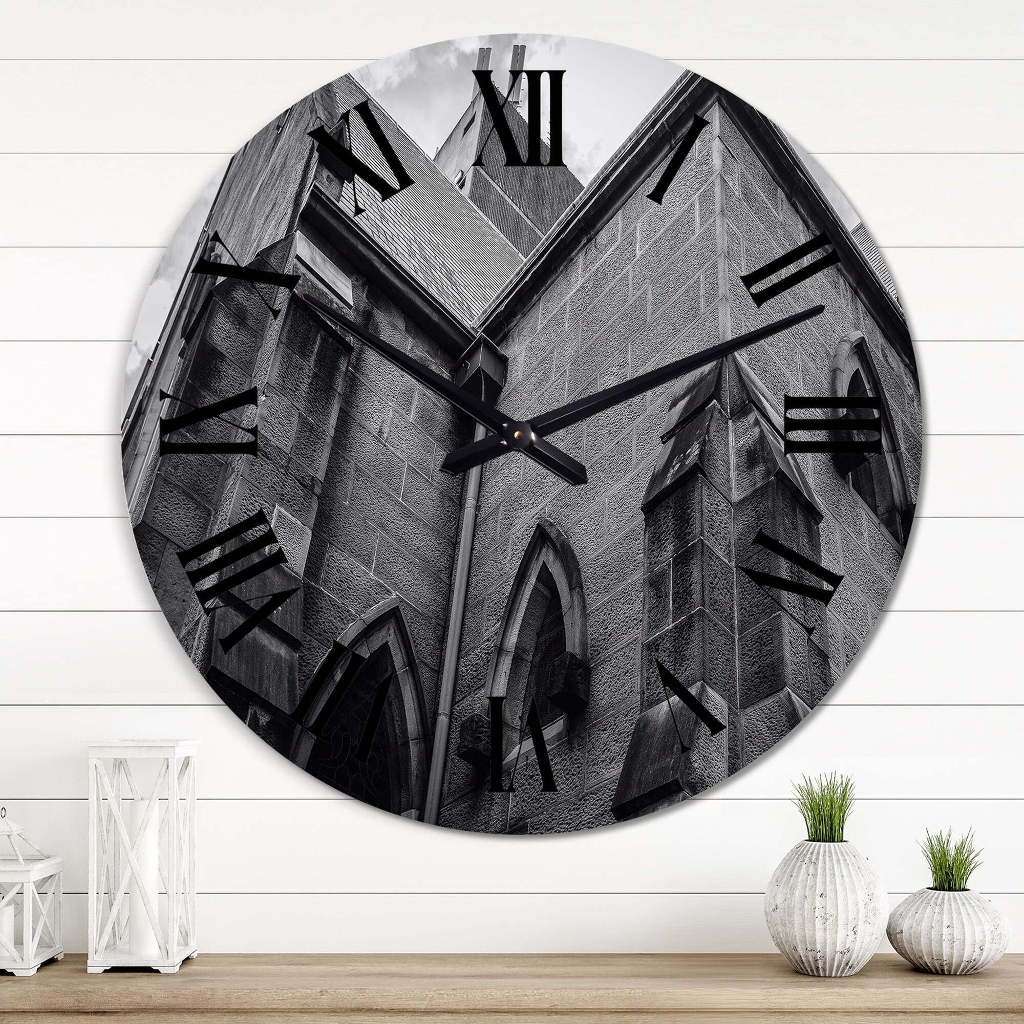 Designart 'Gothic Architecture Building in Black And White' Vintage wall clock