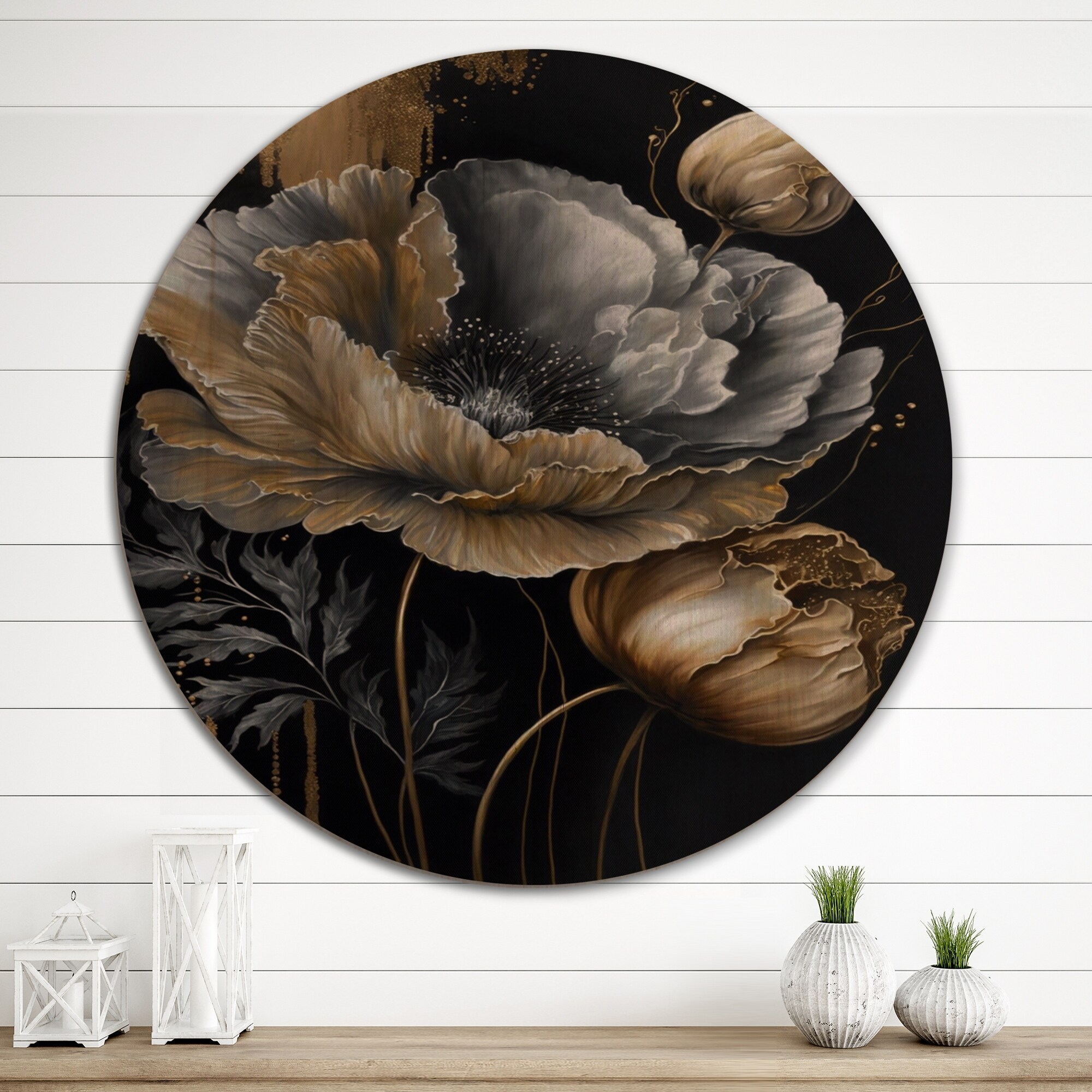 Designart "Golden Gothic Floral Bouquet IV" Traditional Wood Wall Art - Natural Pine Wood