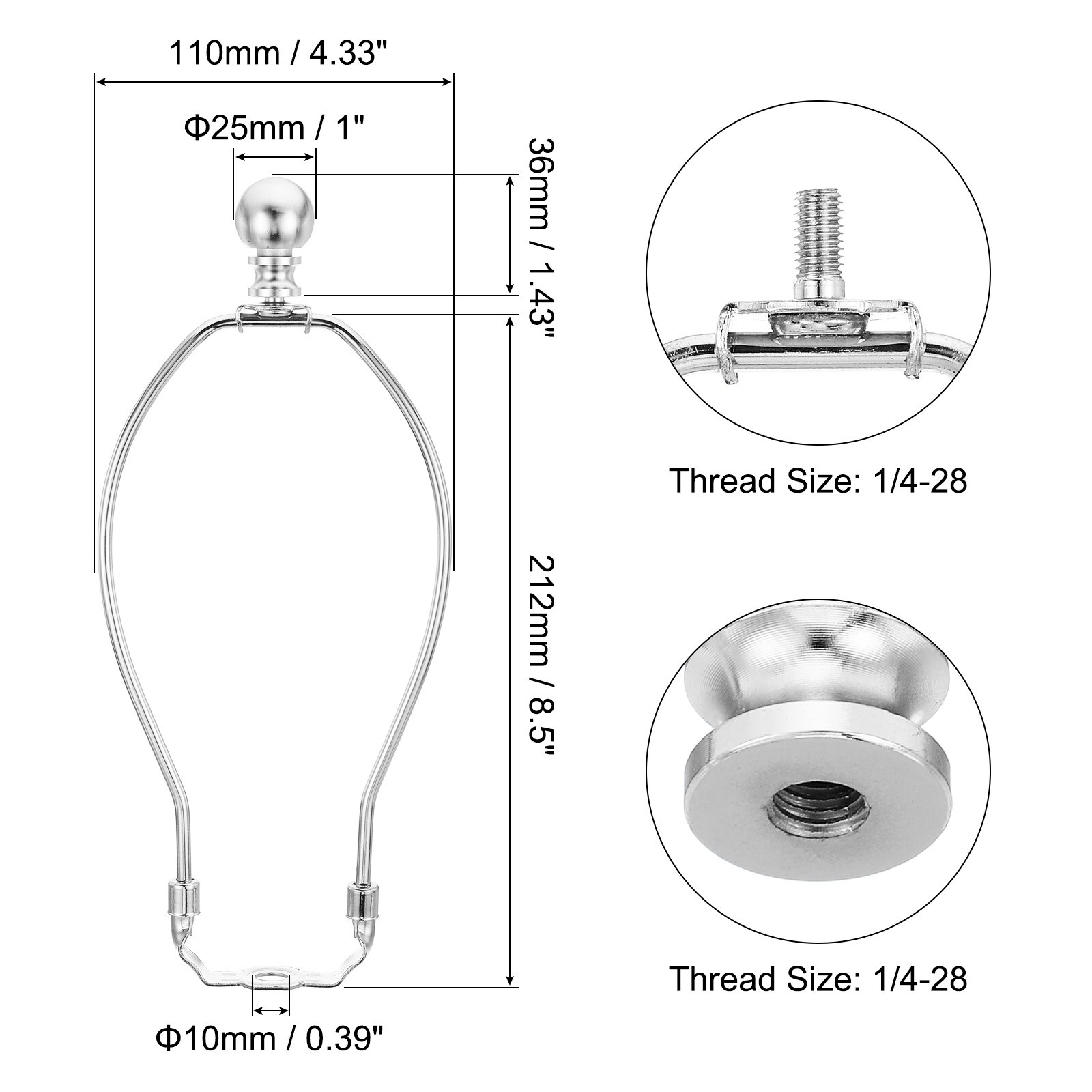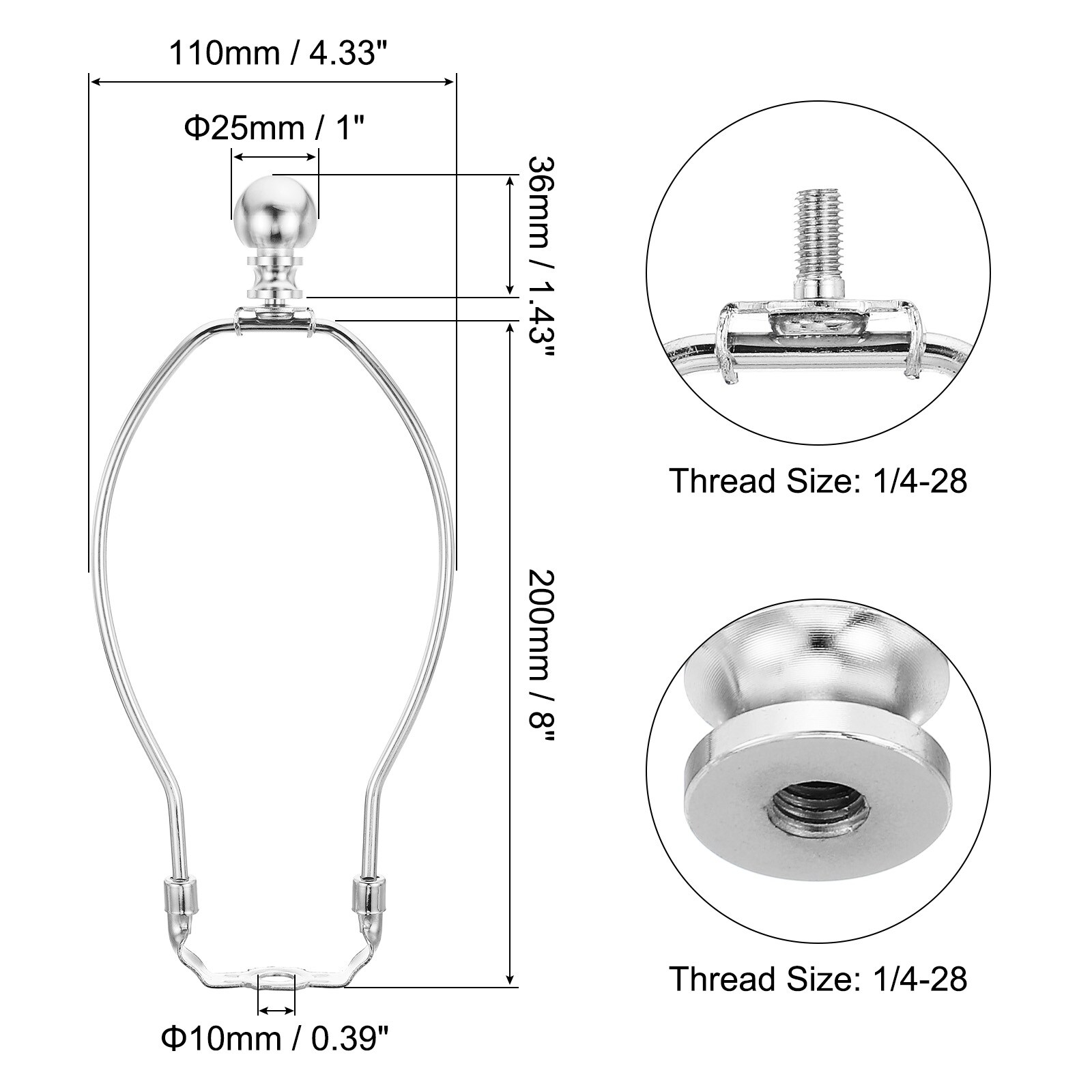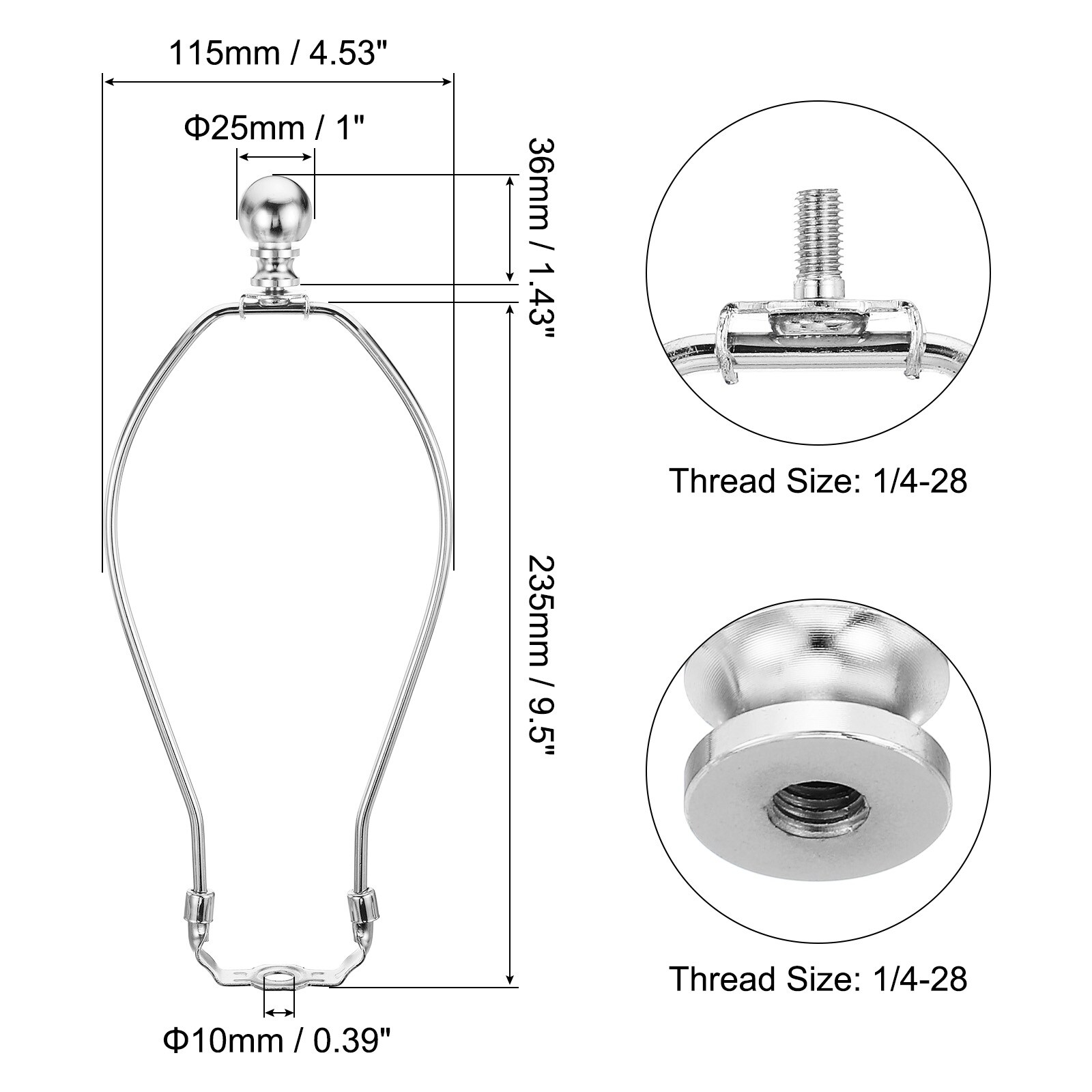 Lamp Harp Kit with Finial, Detachable Lamp Shade Bracket Holder, DIY Lighting Accessories for Table Lamps
