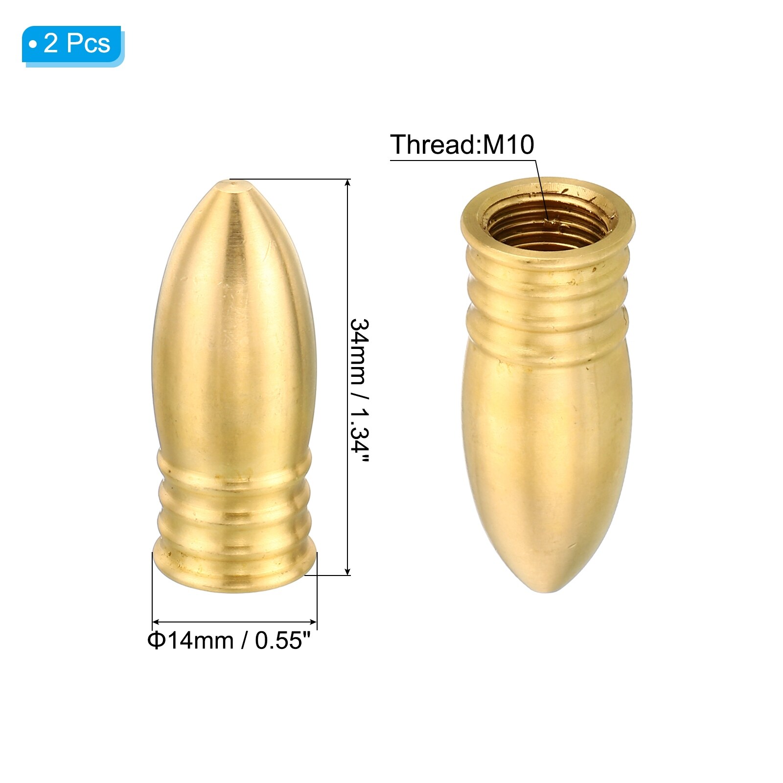 2pcs M10 Thread Lamp Finial Cap Knob Brass Lamp Shade Harp Top Screw 14x34mm - Brass Tone