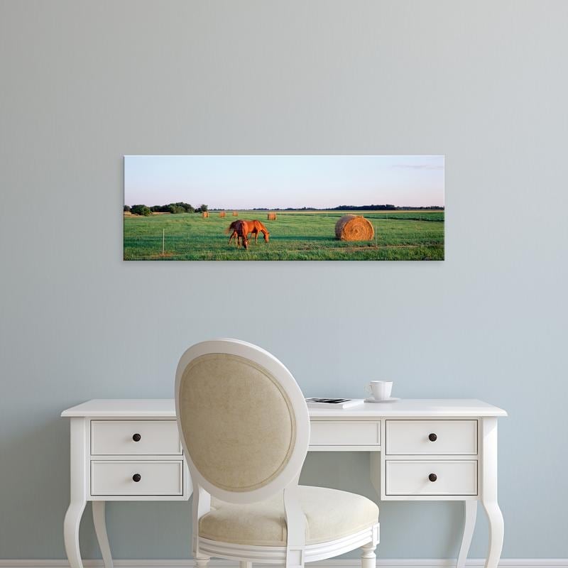 Easy Art Prints Panoramic Images's 'Horses and Hay, Marion County, Illinois, USA' Premium Canvas Art