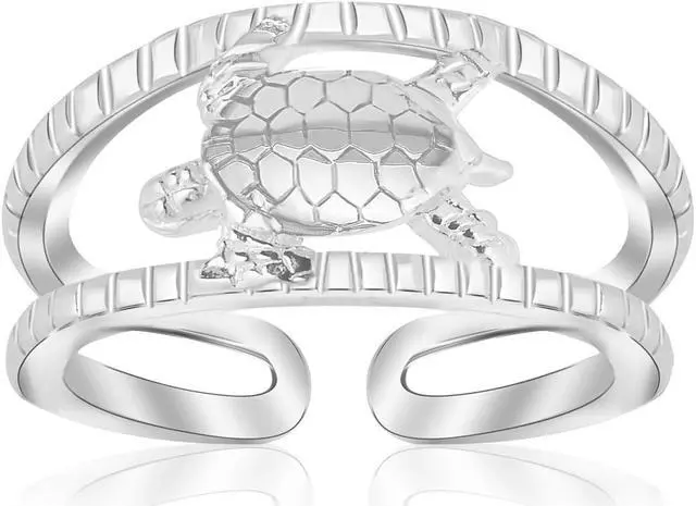 Sterling Silver Rhodium Plated Open Toe Ring with a Turtle Accent