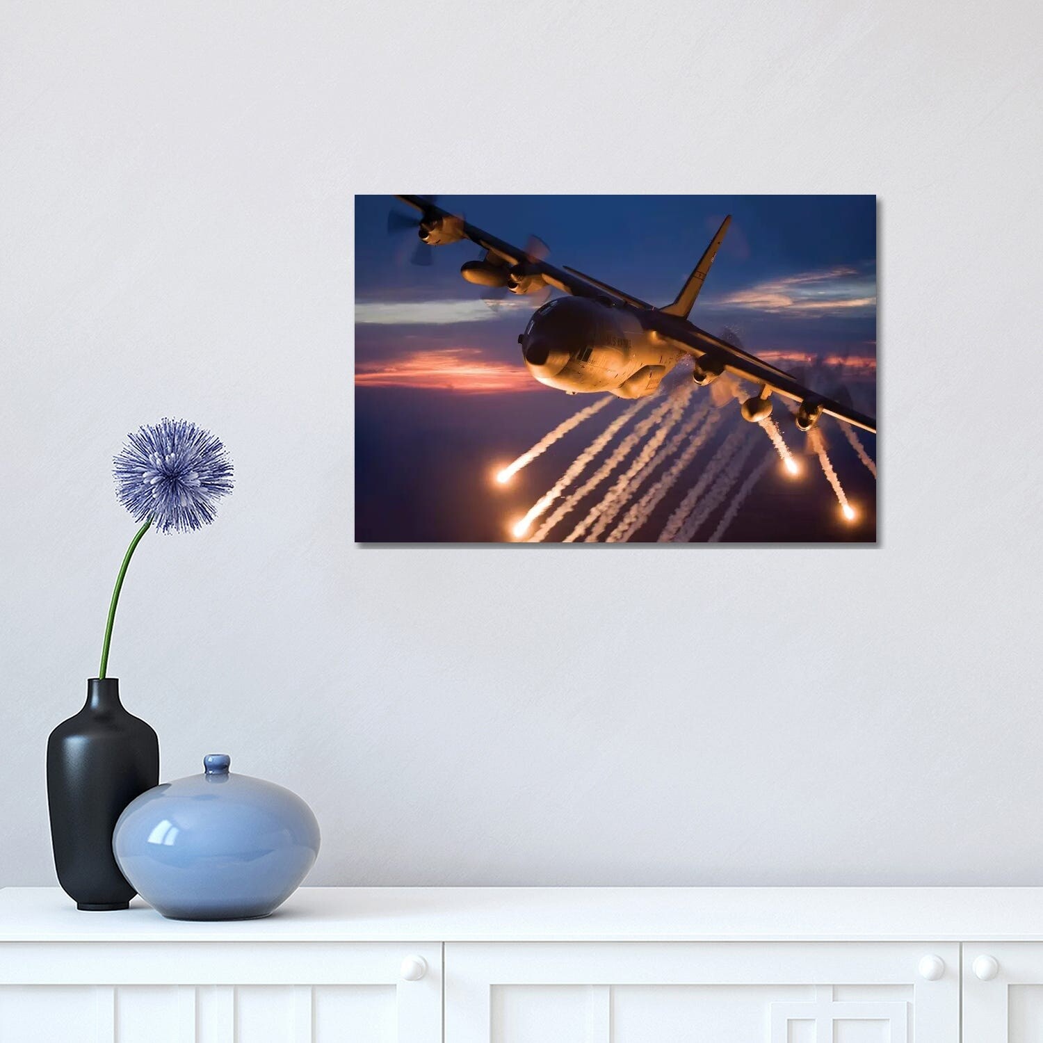 iCanvas "C-130 Hercules Releases Flares During A Mission Over Kansas" by HIGH-G Productions Canvas Print