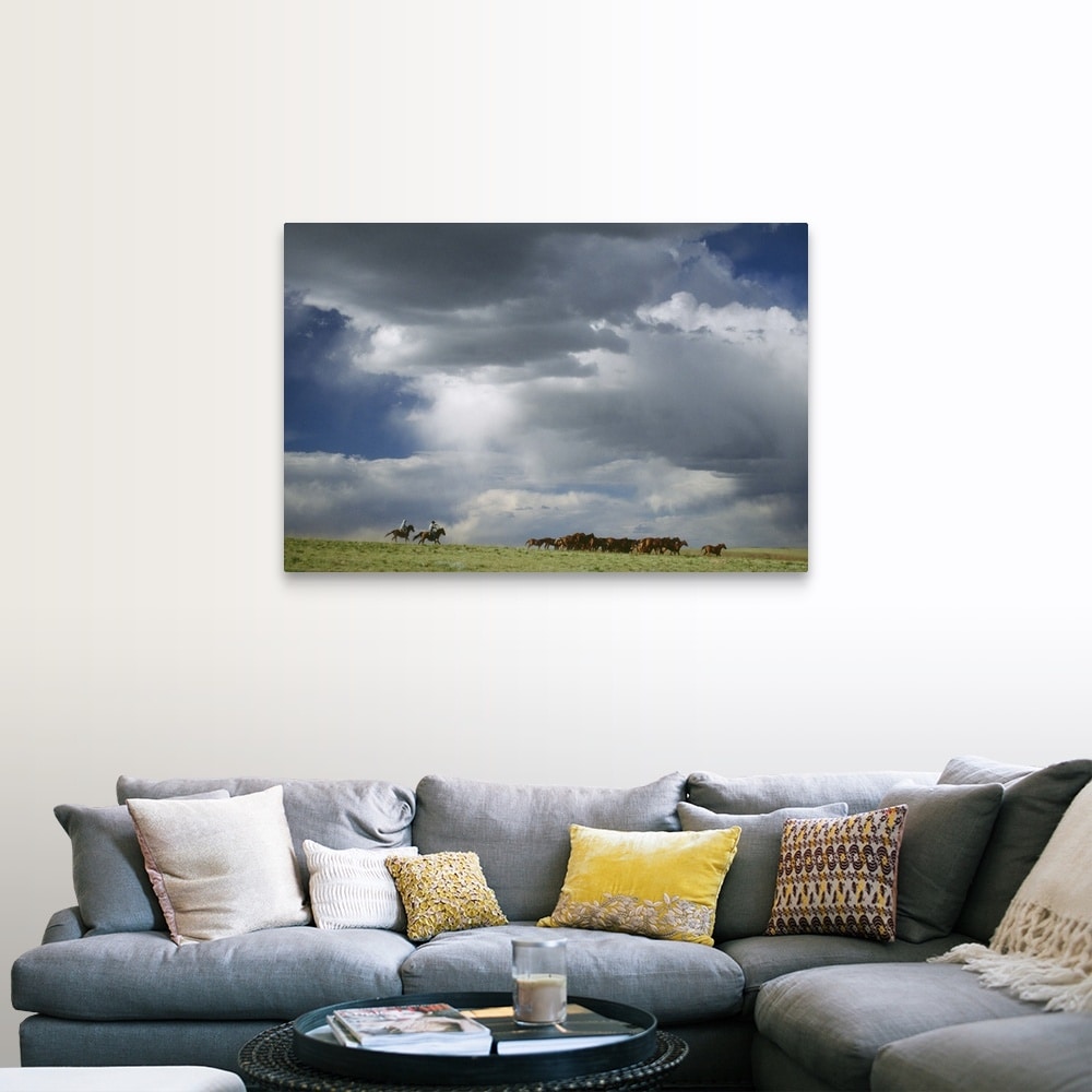 "Cowboys moving herd of horses" Canvas Wall Art