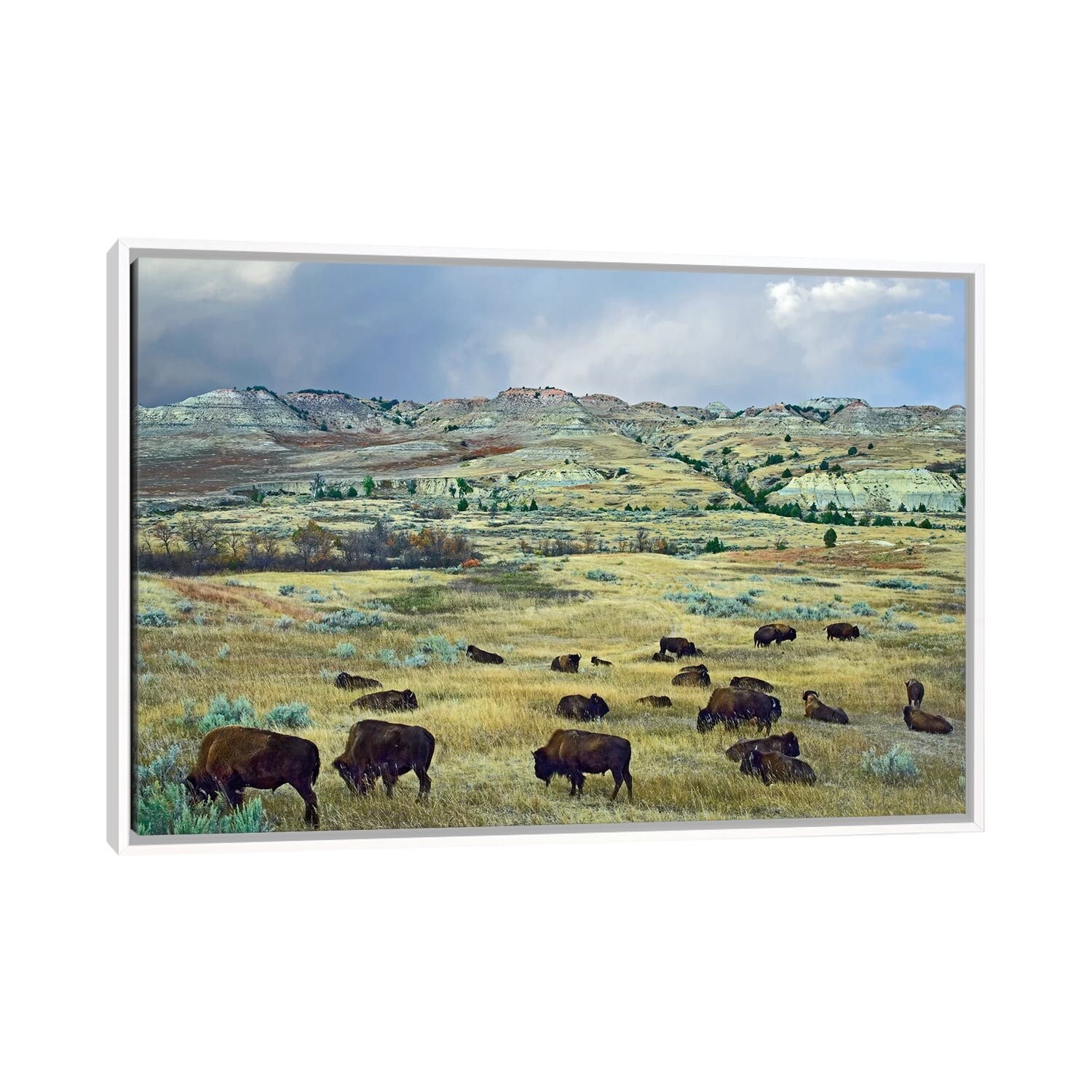 iCanvas "American Bison Herd Grazing on Shortgrass Praire Near Scoria Point" by Tim Fitzharris Framed Canvas Print