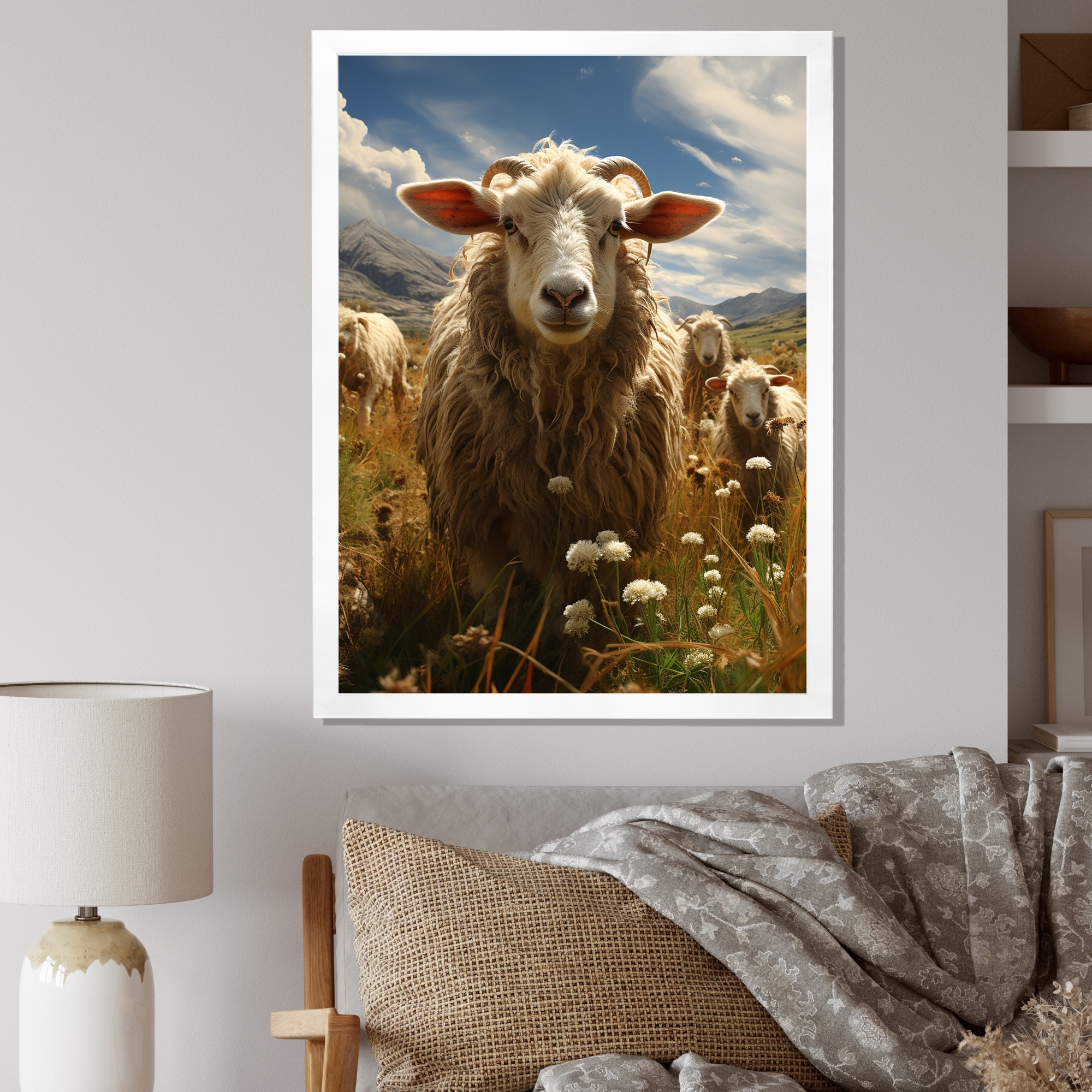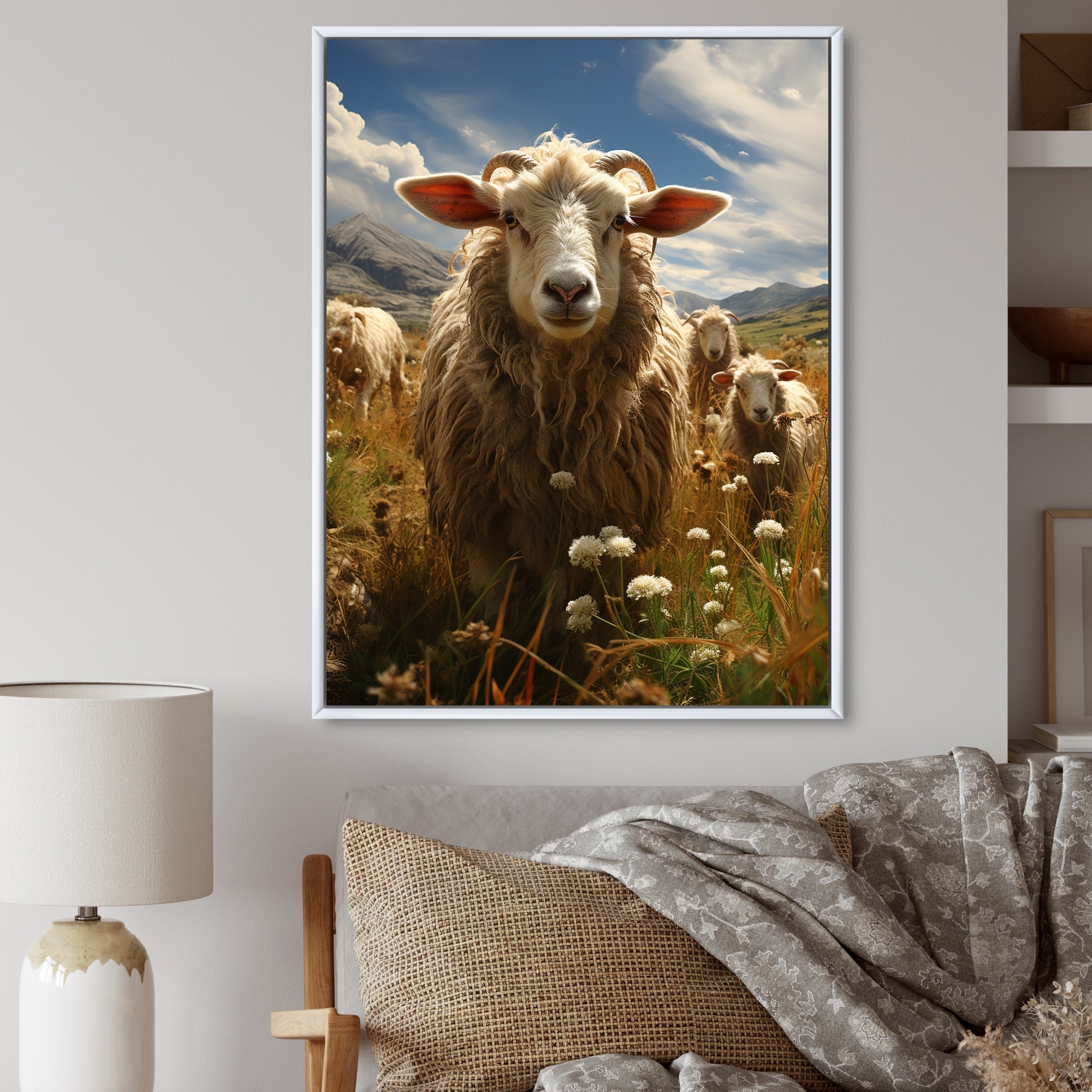 Designart "Sheep Harmony in Herd" Sheep Framed Wall Art Living Room