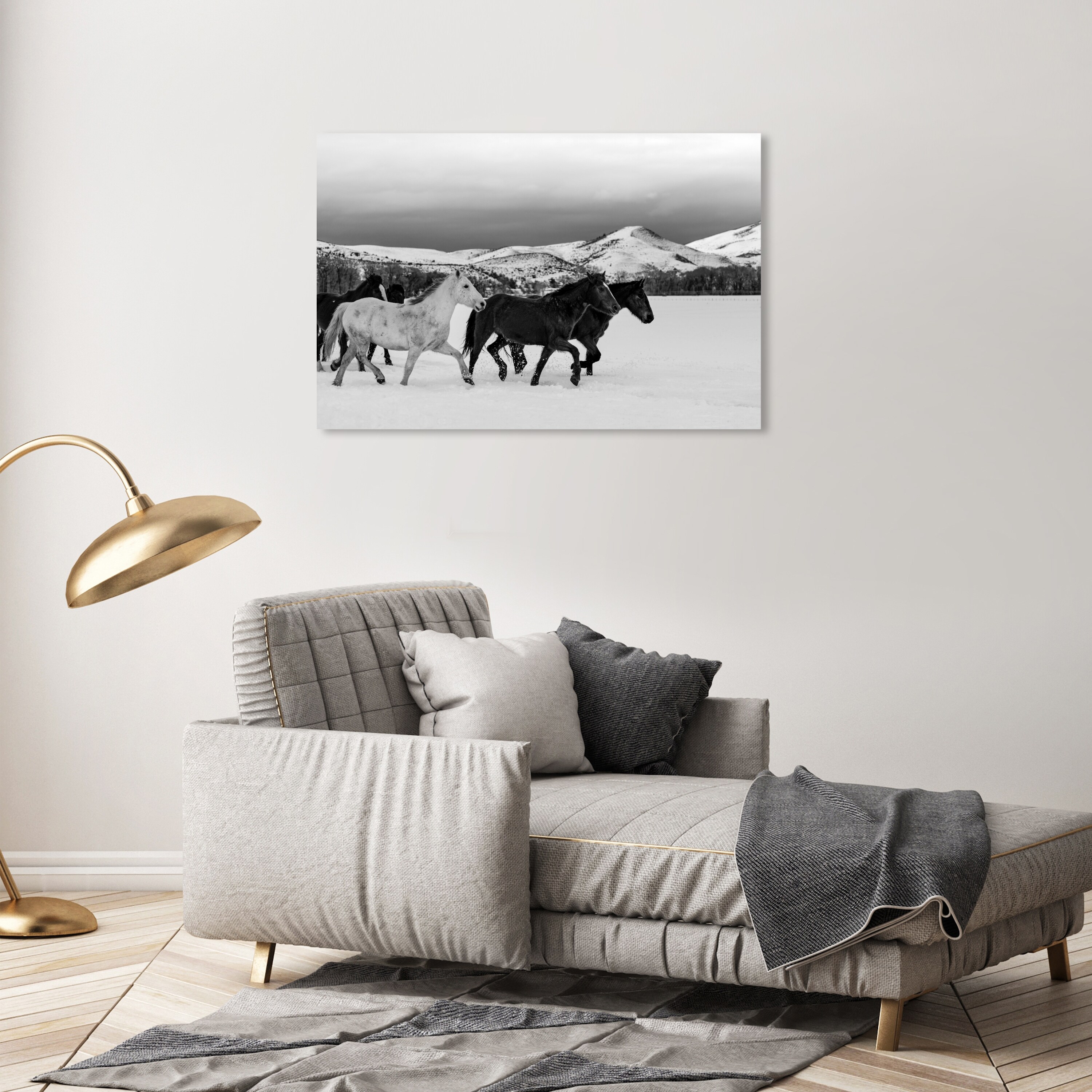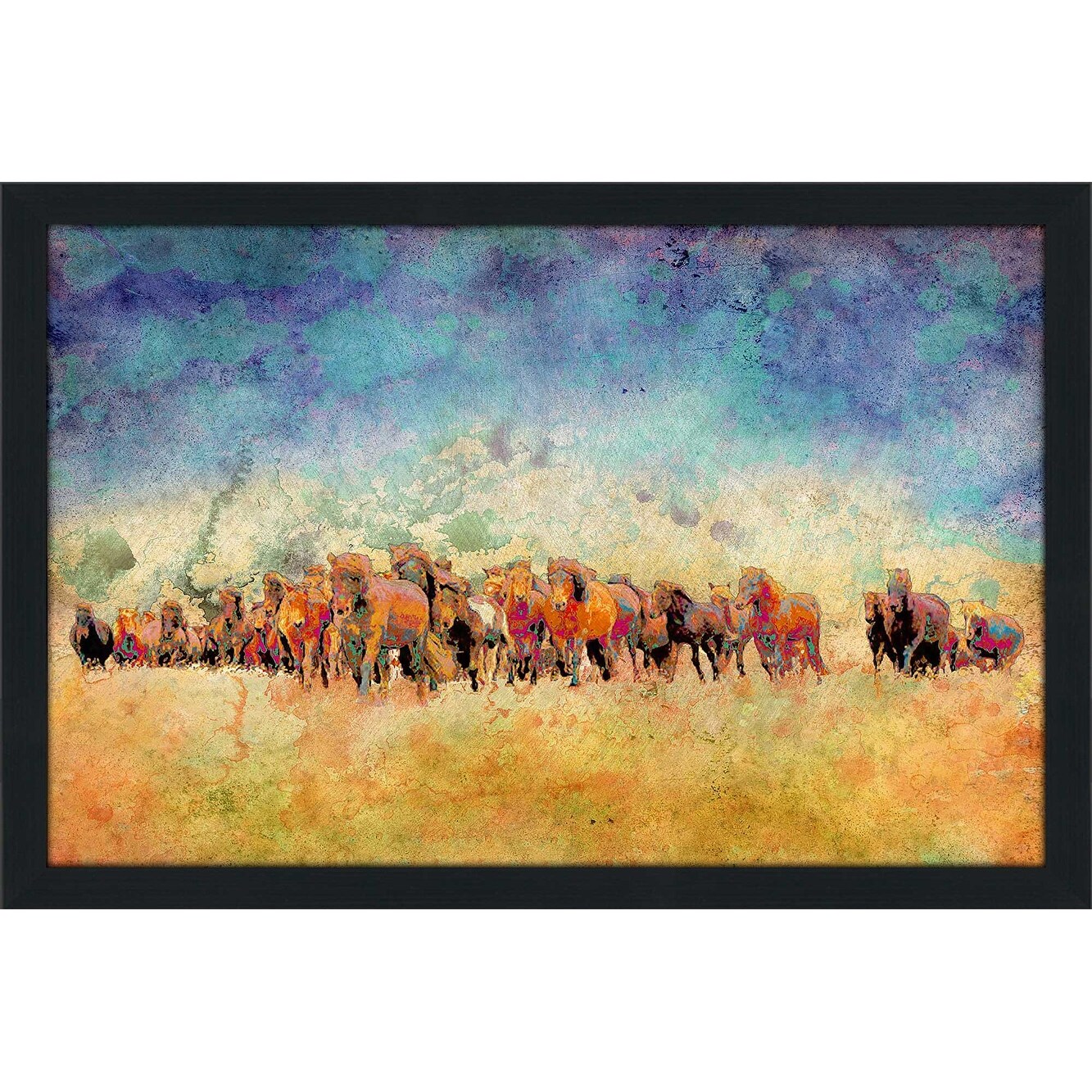 Oliver Gal 'Equine Herd Team Landscape' Framed Canvas Art Print