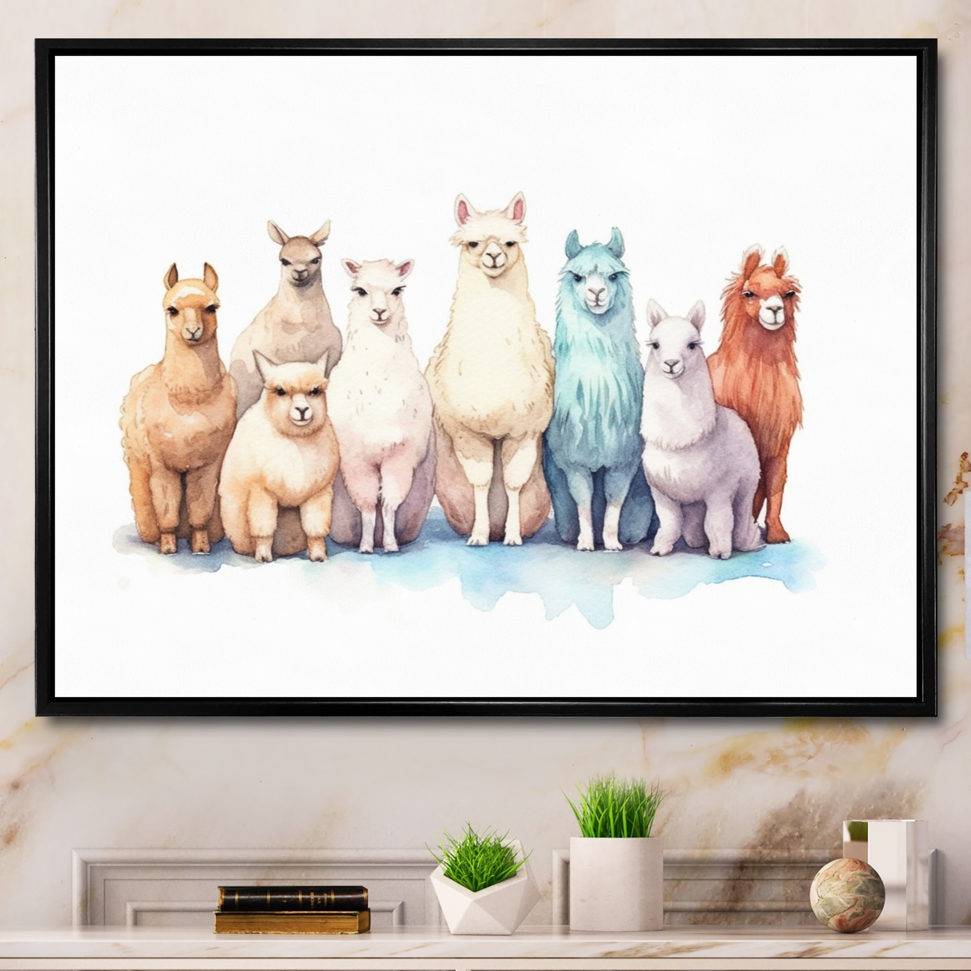 Designart "Herd Of Colorful Huacayas II" Animals Framed Canvas Prints
