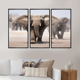 Designart "Elephant Herd" Animal Framed Canvas Wall Art Set of 3 - 4 Colors of Frames