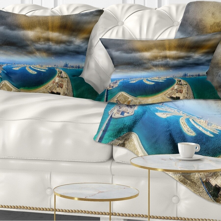 Designart 'Dubai Jumeirah Palm Aerial View' Seascape Throw Pillow