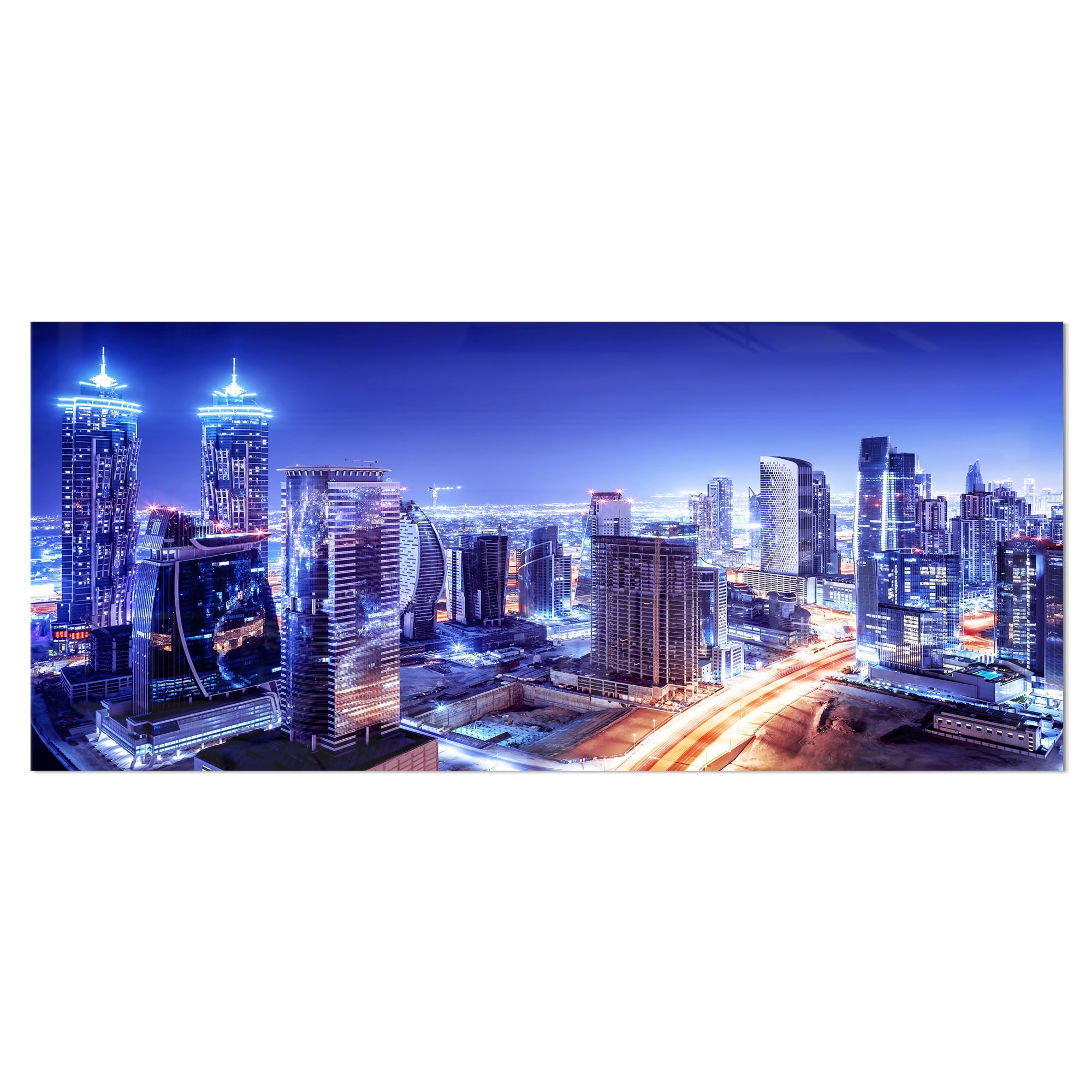 Designart 'Dubai Downtown Night Scene' Cityscape Photography Metal Wall Art
