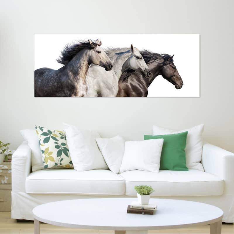 Horses Wall Art on Frameless Free Floating Tempered Glass