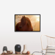 "Bay horse in fog at sunrise." Black Float Frame Canvas Art