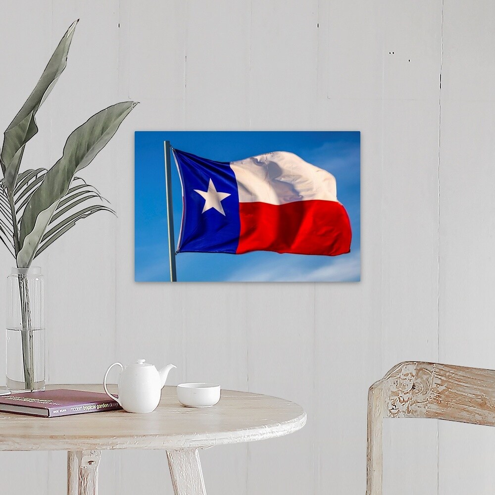 "Texas "Lone Star" Flag Stands Out Against A Cloudless Blue Sky, Houston, Texas" Canvas Wall Art
