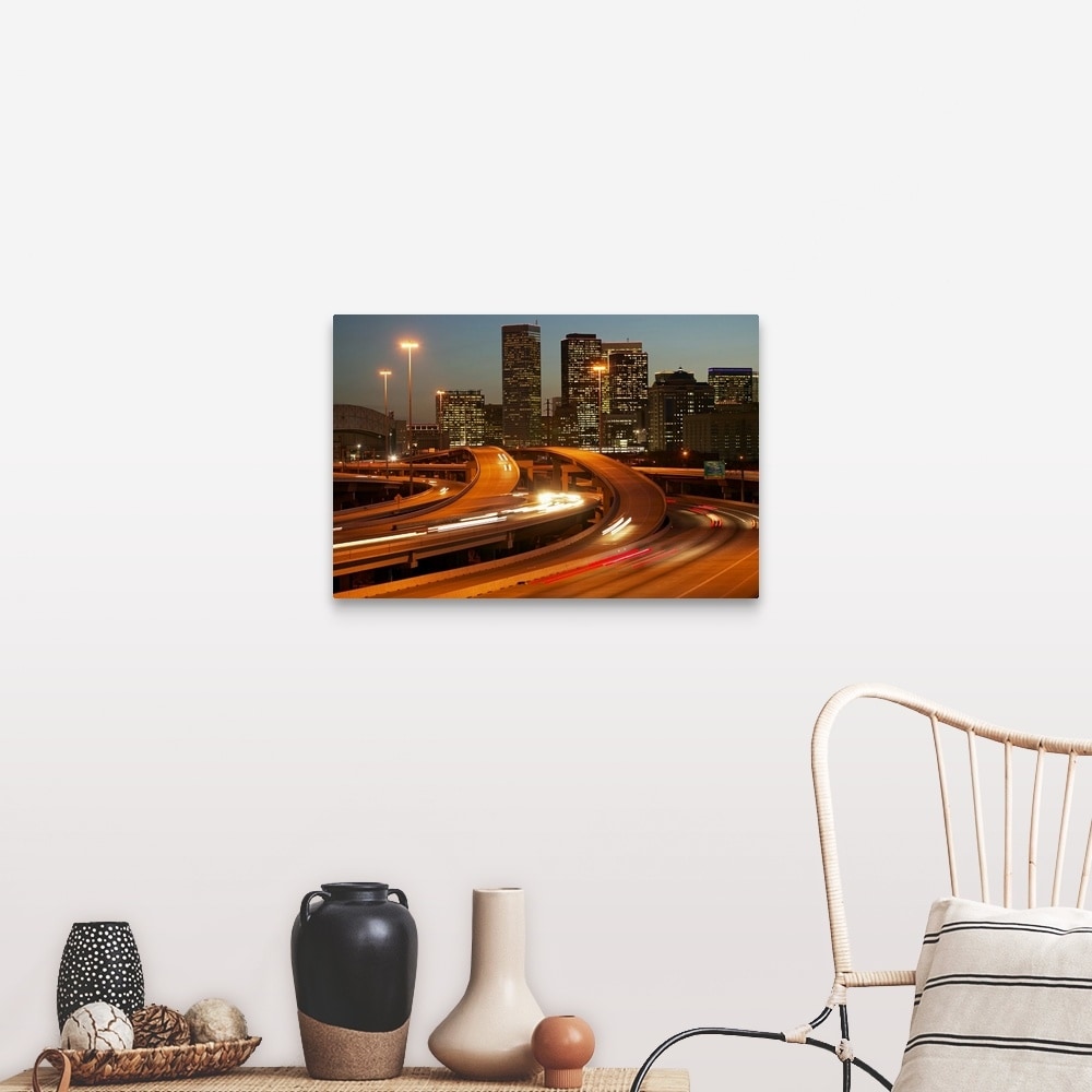 "USA, Texas, Houston city skyline and motorway, dusk (long exposure)" Canvas Wall Art
