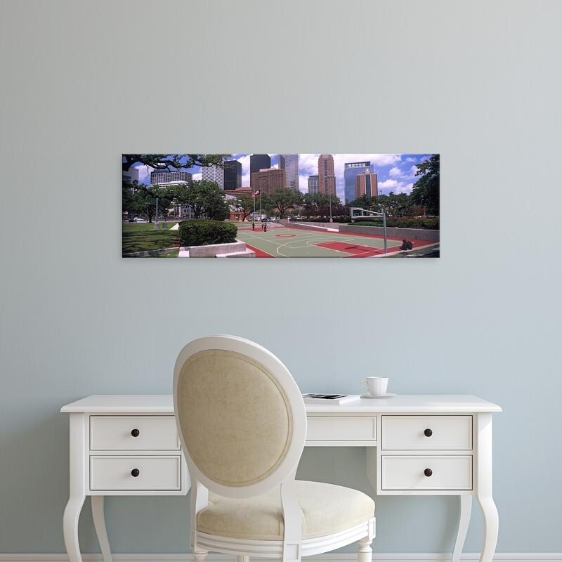 Easy Art Prints Panoramic Image 'Basketball court with skyscrapers in the background, Houston, Texas, USA' Canvas Art