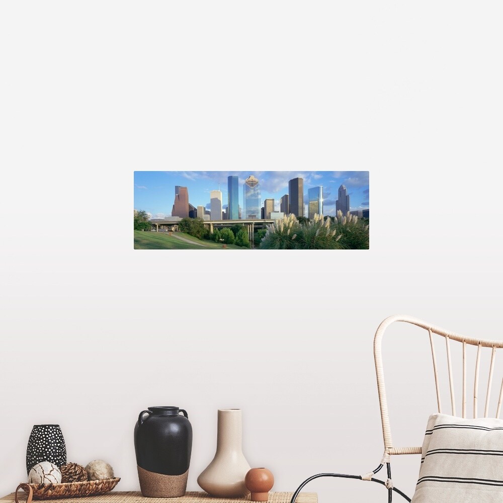 Easy Art Prints Panoramic Images's 'Downtown skylines viewed from a park, Houston, Texas, USA' Premium Canvas Art