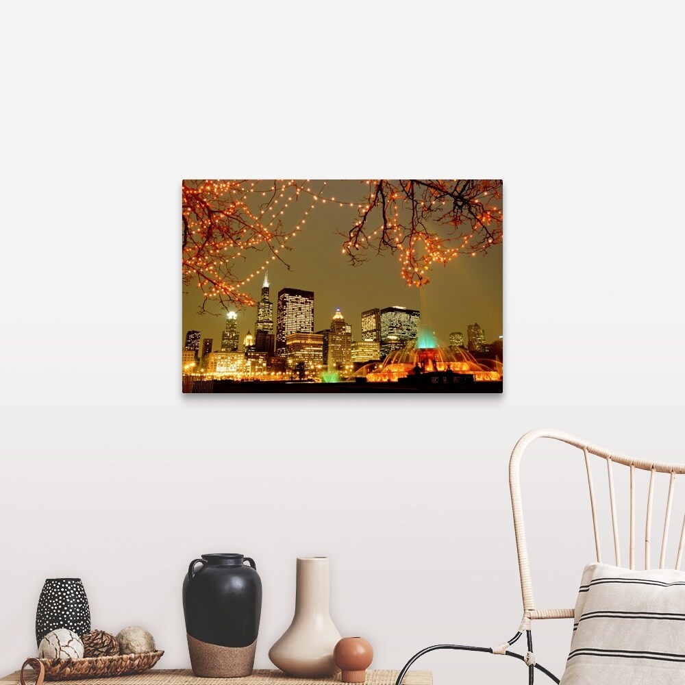 "Illinois, Chicago, skyline and Grant Park at night" Canvas Wall Art
