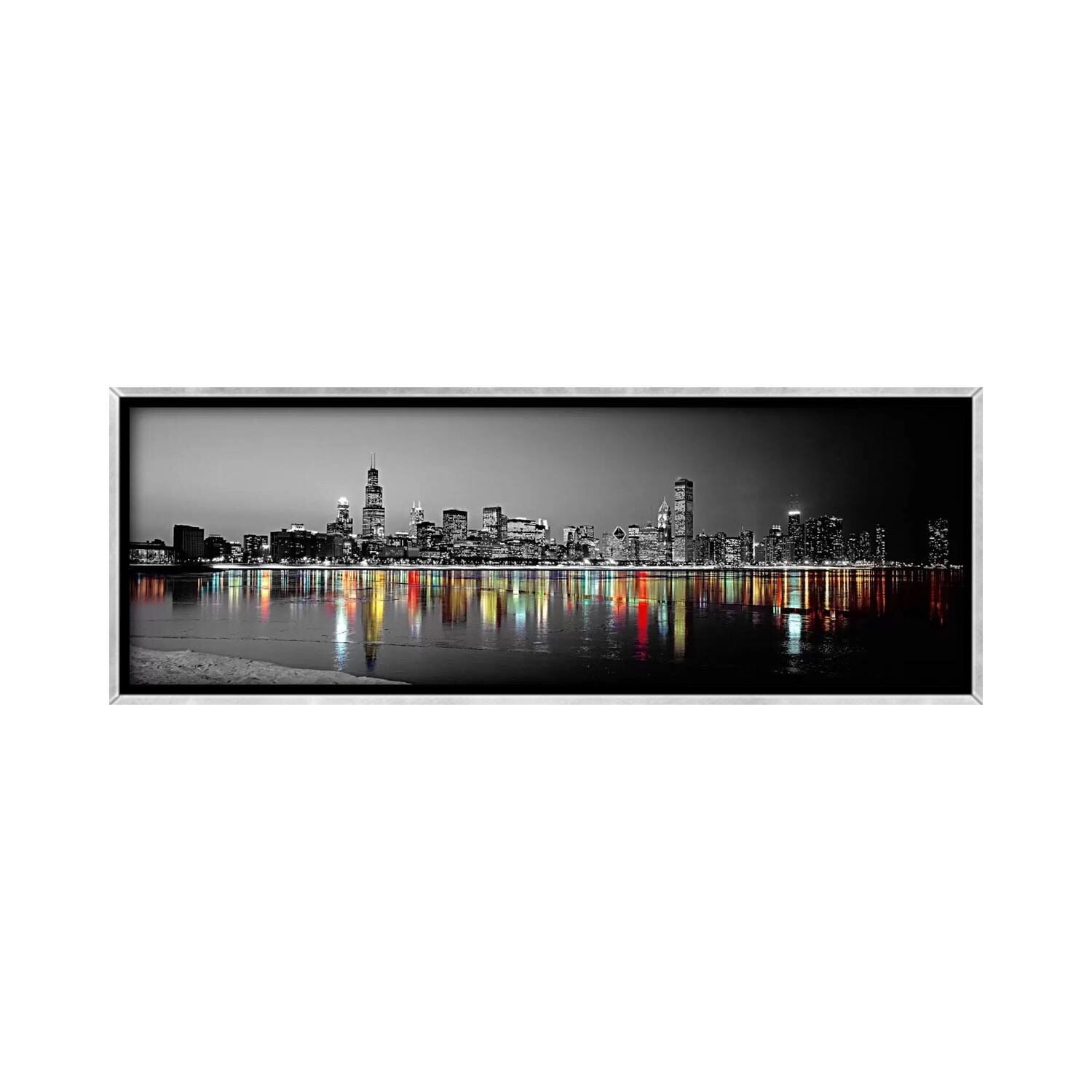 iCanvas "Skyline at Night with Color Pop Lake Michigan Reflection, Chicago, Illinois, USA" by Panoramic Images Framed