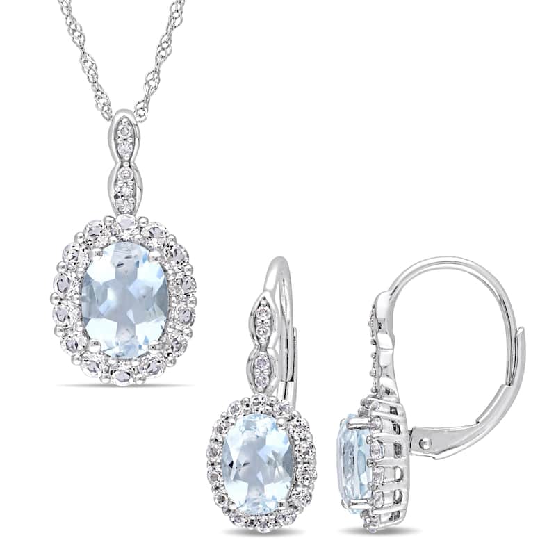 Miadora Signature Collection 14k White Gold Aquamarine White Topaz & Diamond Accent Necklace and Leverback Earrings Set