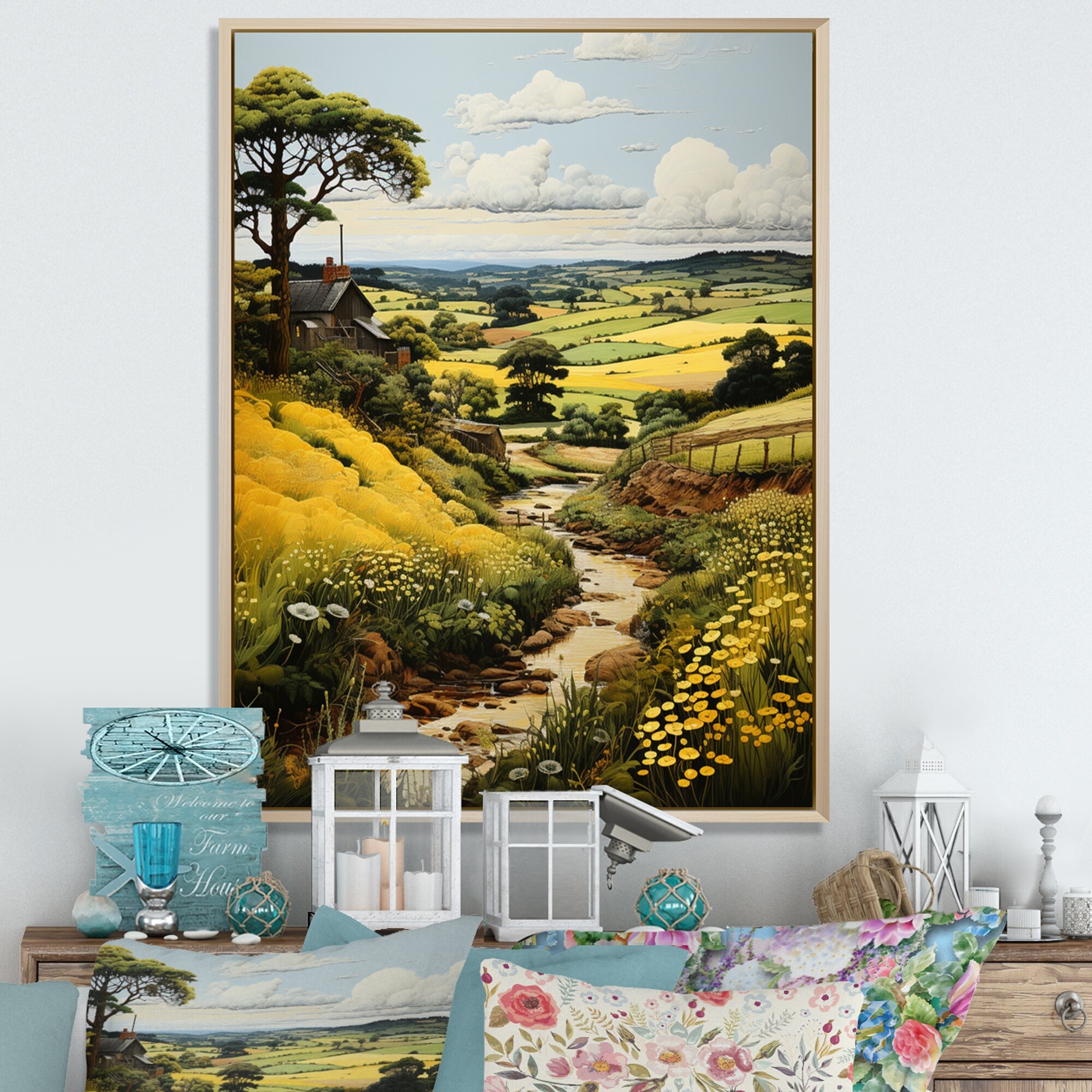 Designart "Countryside Green And Yellow Reverie Landscape V" Countryside Framed Canvas Prints