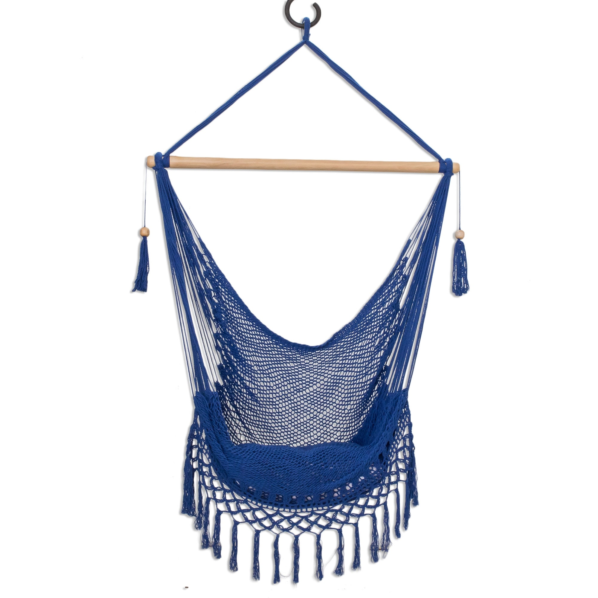 Novica Handmade Simple Relaxation in Lapis Cotton Hammock Swing (Single)