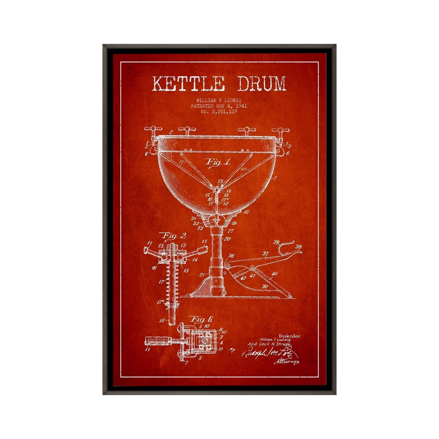 iCanvas "Ludwig Kettle Red Patent Blueprint" by Aged Pixel Framed Canvas Print