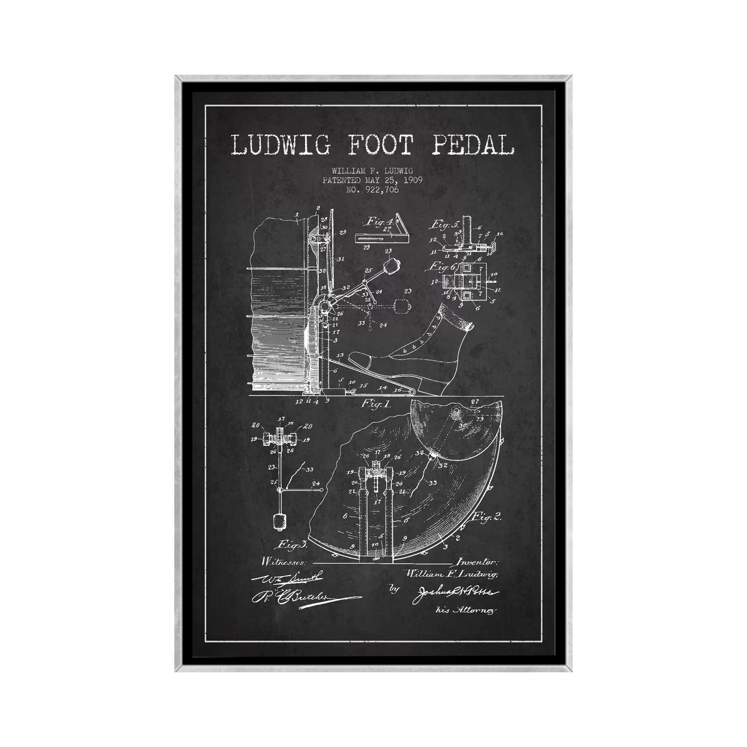 iCanvas "Ludwig Pedal Charcoal Patent Blueprint" by Aged Pixel Framed