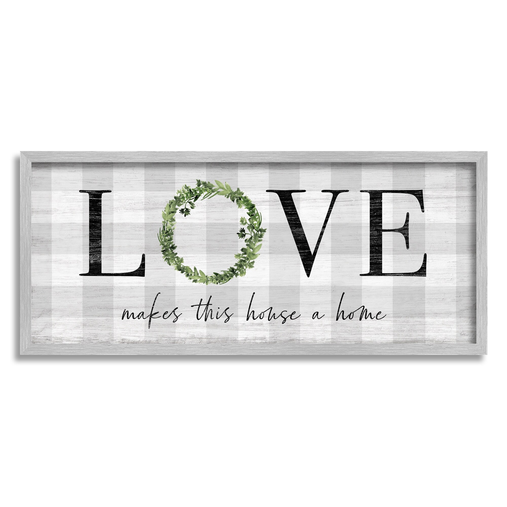 Stupell Love Makes House Home Phrase Green Wreathe Plaid Framed Wall Art - Grey